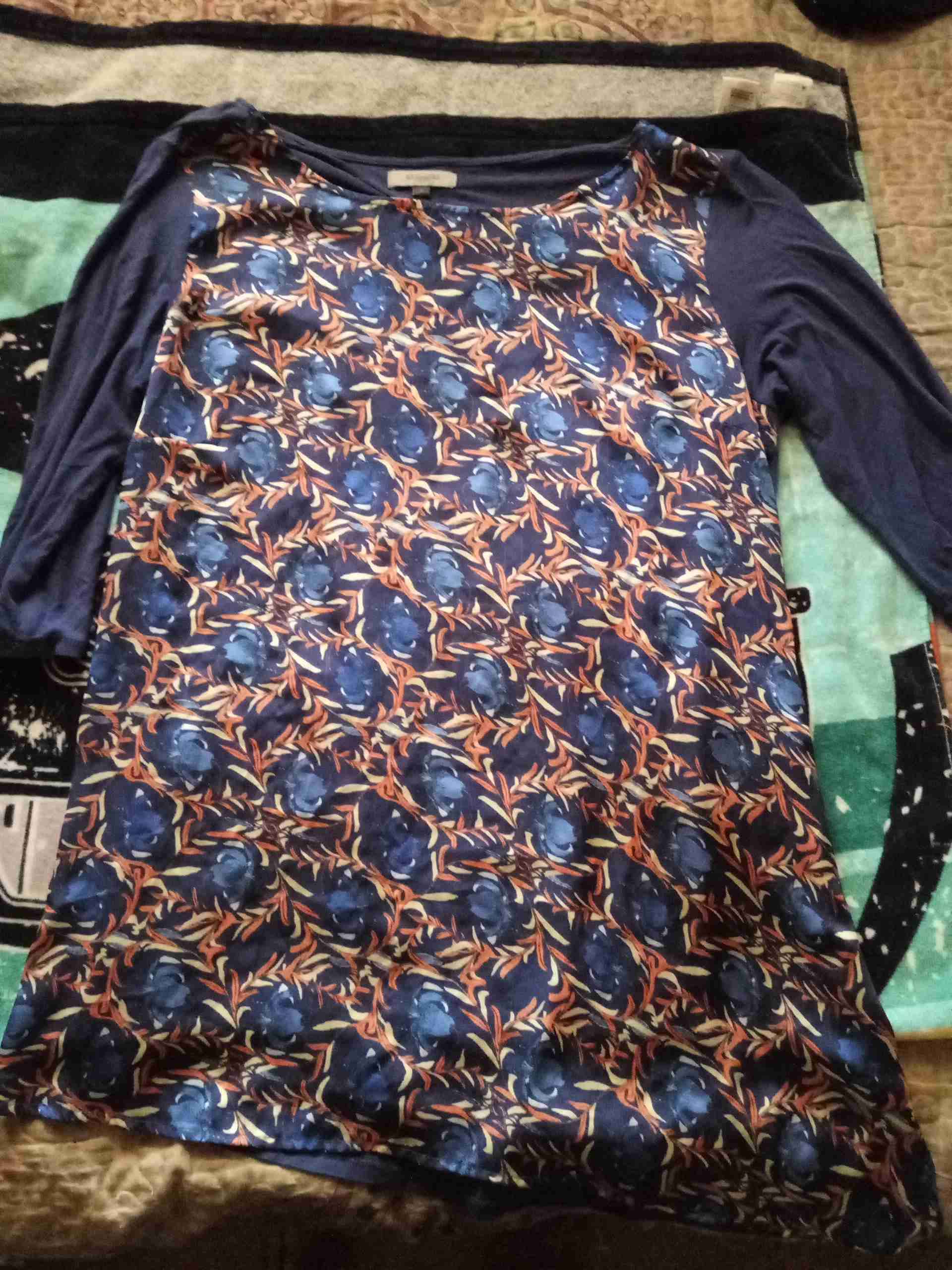 Blusa de mujer con diseño floral en tonos azules, estilo casual y cómodo. Ideal para usar en otoño o invierno.