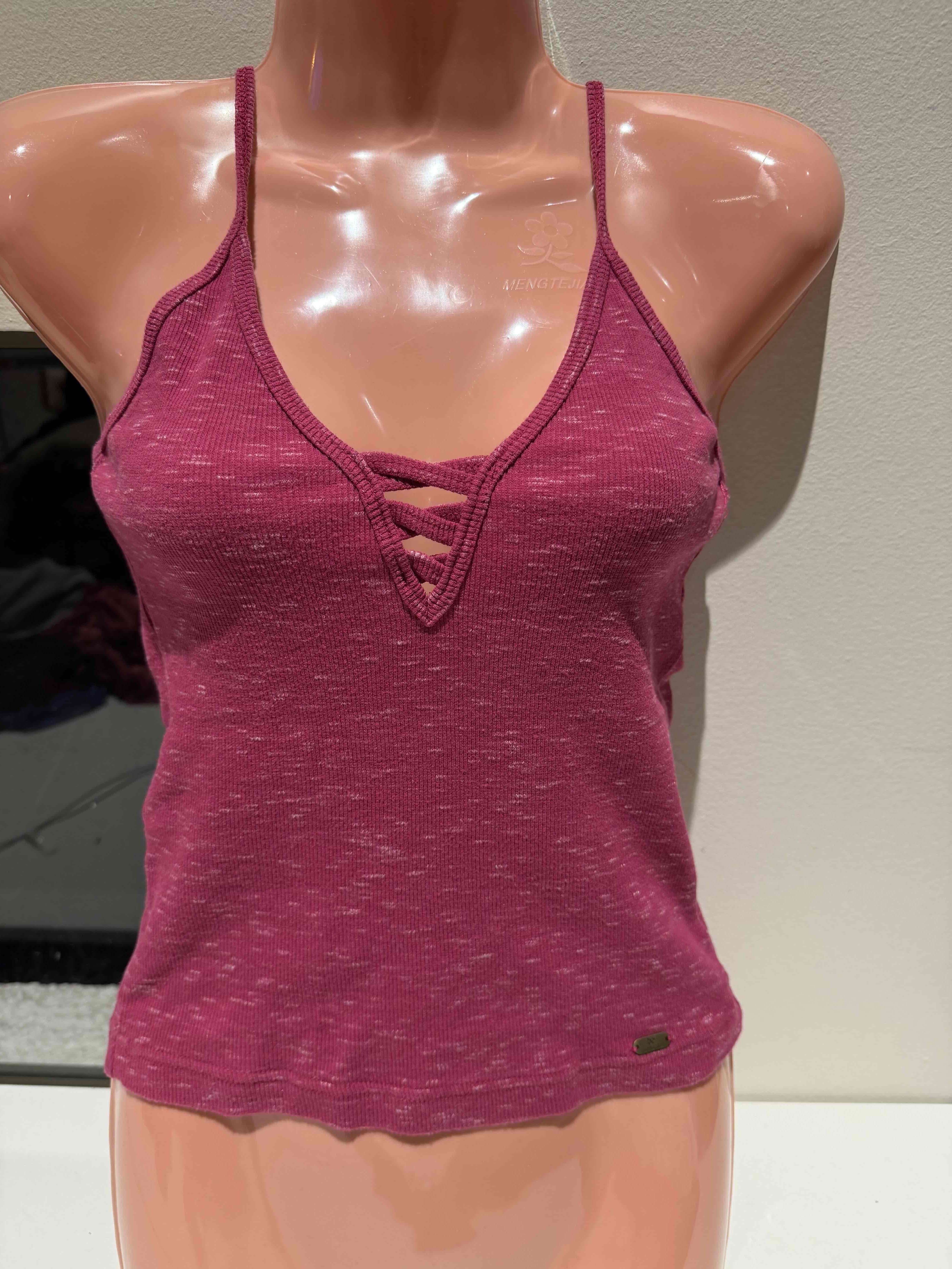 Polera de color morado con diseño de tirantes cruzados, ideal para verano. En buen estado general, con leves signos de uso.