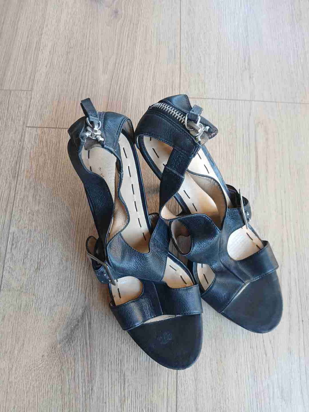 Sandalias negras de cuero con detalles metálicos. Perfectas para un look formal o casual. Como nuevas. Marca Nine West.