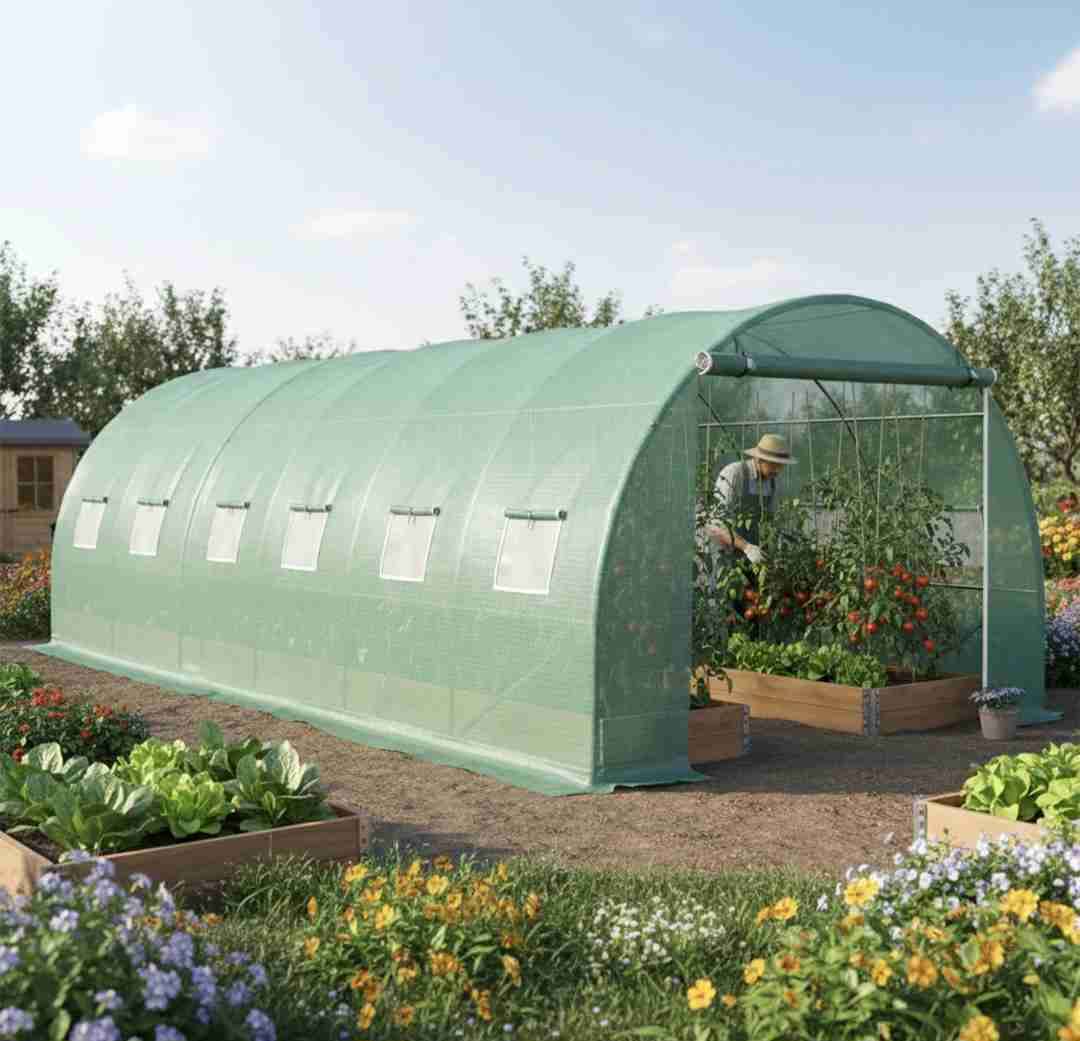 Invernadero tipo túnel, ideal para cultivar vegetales. Cubierta resistente y estructura metálica. Perfecto para proteger tus plantas. Medidas: 600x300x200cm (18m²)
