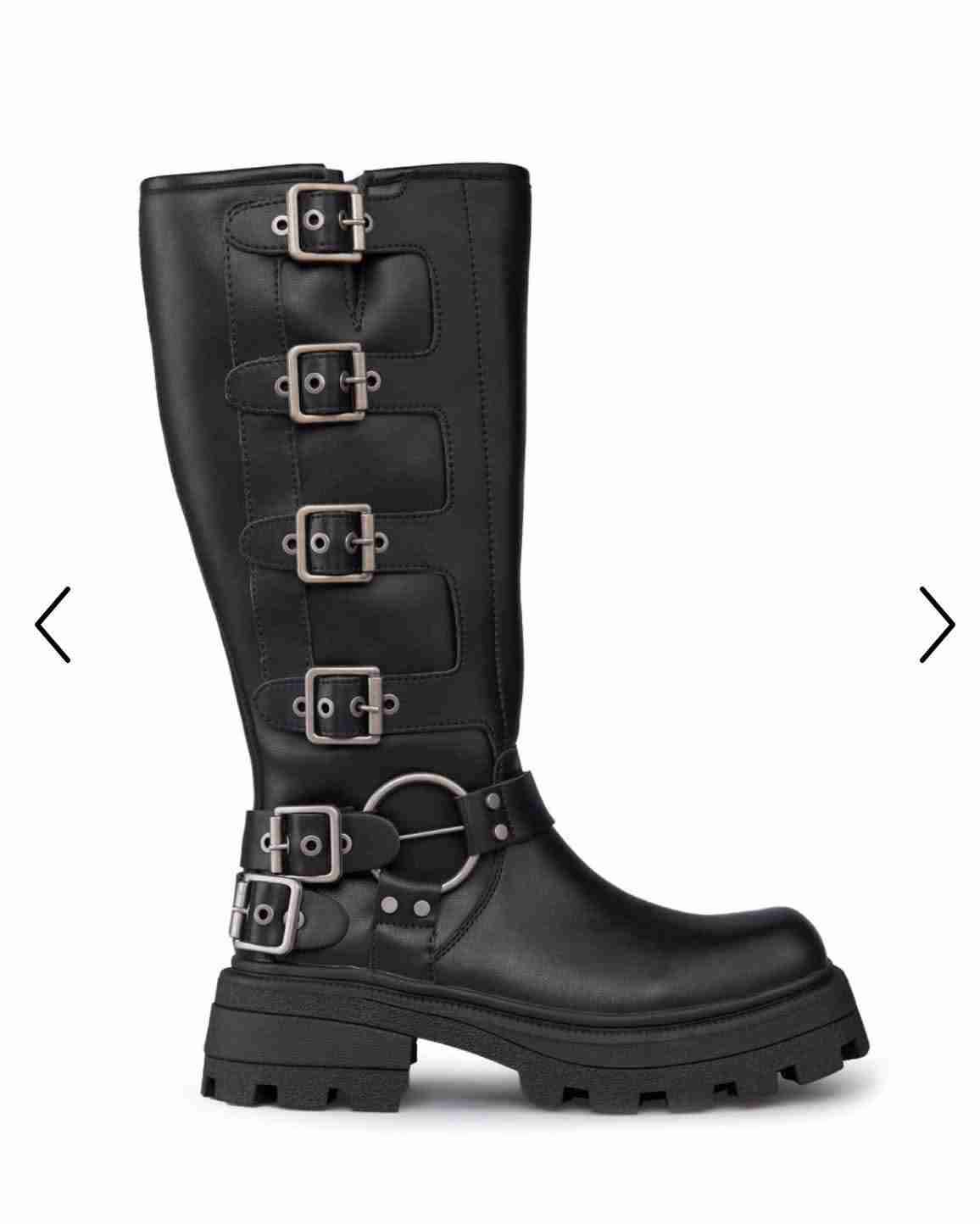 Botas negras de estilo robusto con hebillas decorativas. Perfectas para un look alternativo. En buen estado.