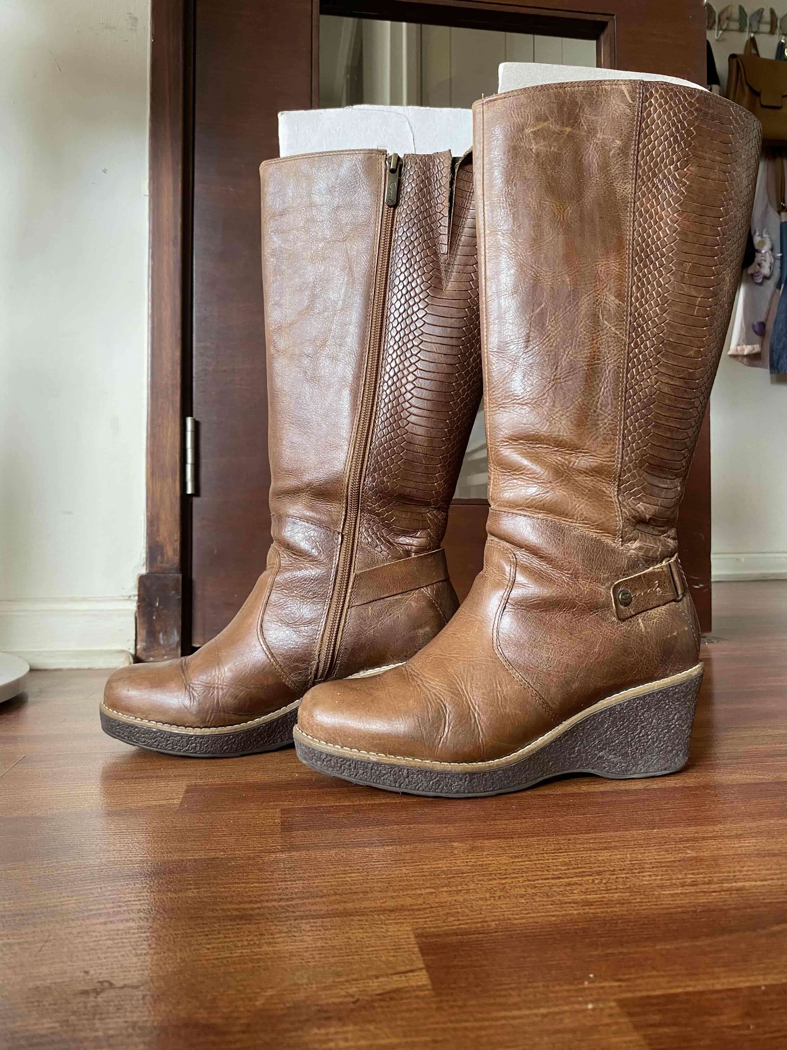 Botas de cuero café, estilo elegante y cómodo. En buen estado general, perfectas para el invierno.