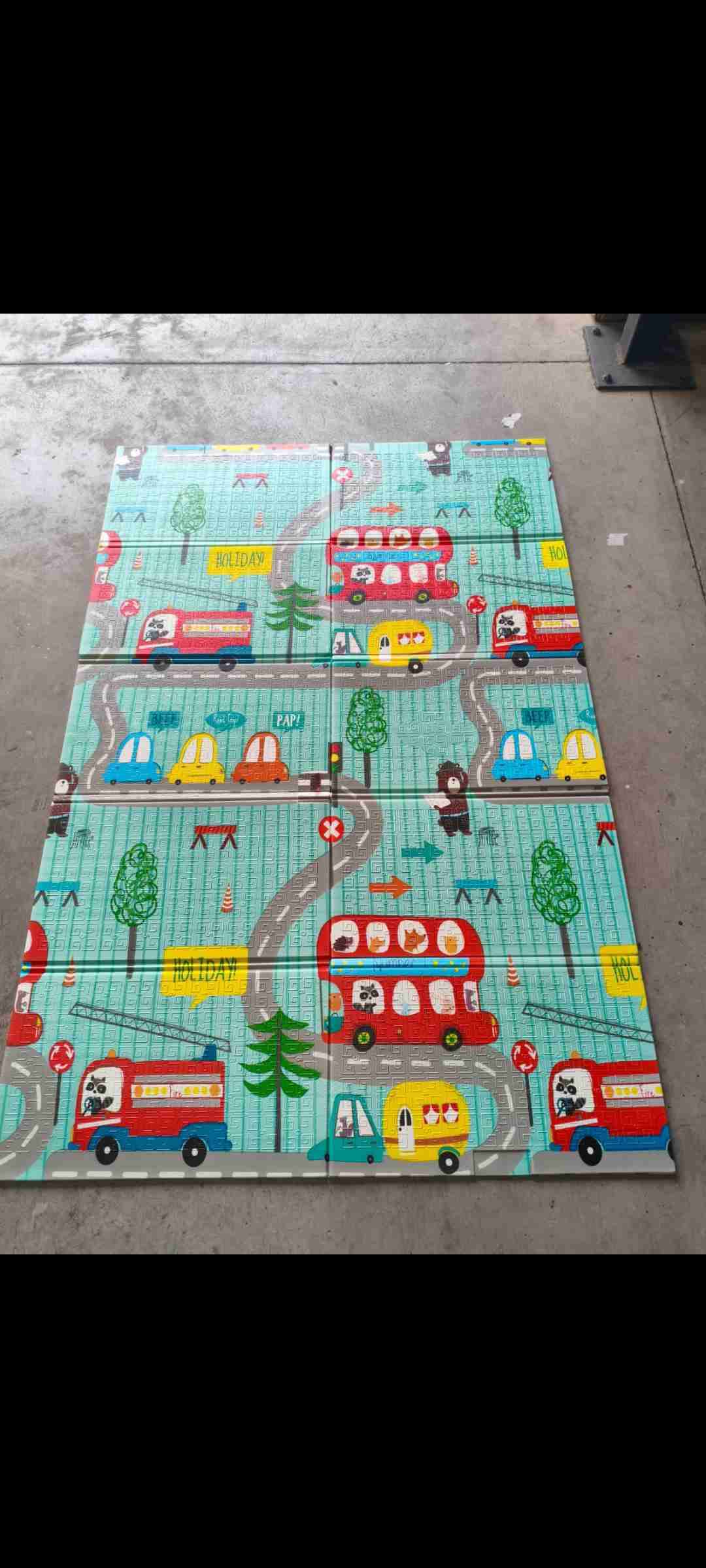 Medidas 120x180cm Colorida alfombra de goma con diseño de carretera y vehículos. Ideal para el juego de los niños. En buen estado, fácil de limpiar.