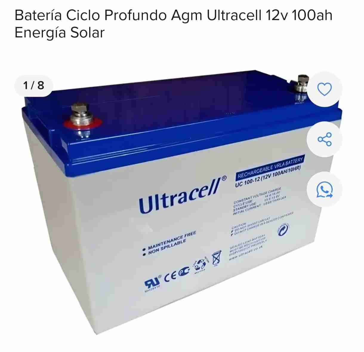 Batería de ciclo profundo para energía solar. Ideal para sistemas solares y eólicos. Buen estado general. Conversable