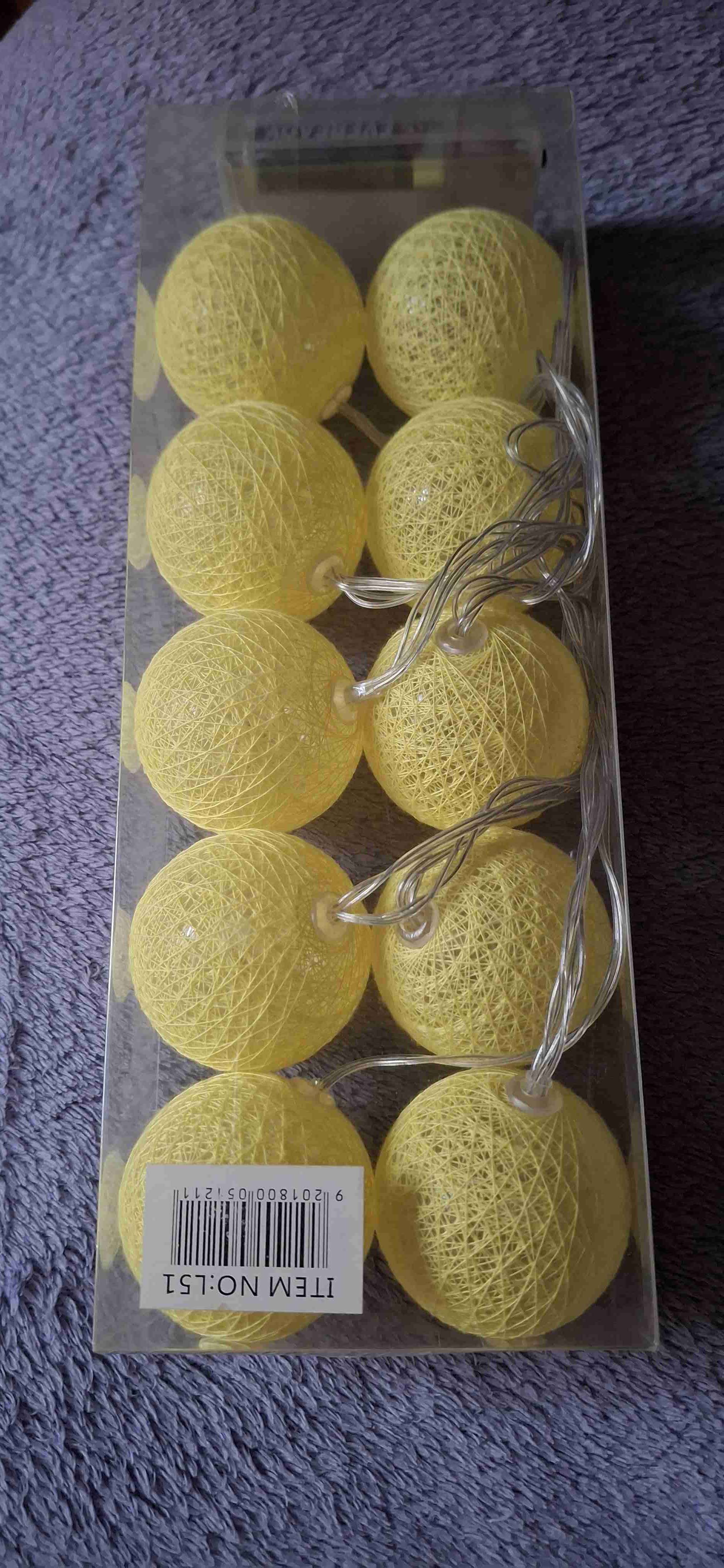 Guirnalda decorativa de luces en forma de bolas amarillas. Ideal para ambientar espacios con un toque cálido. En buen estado, lista para usar.