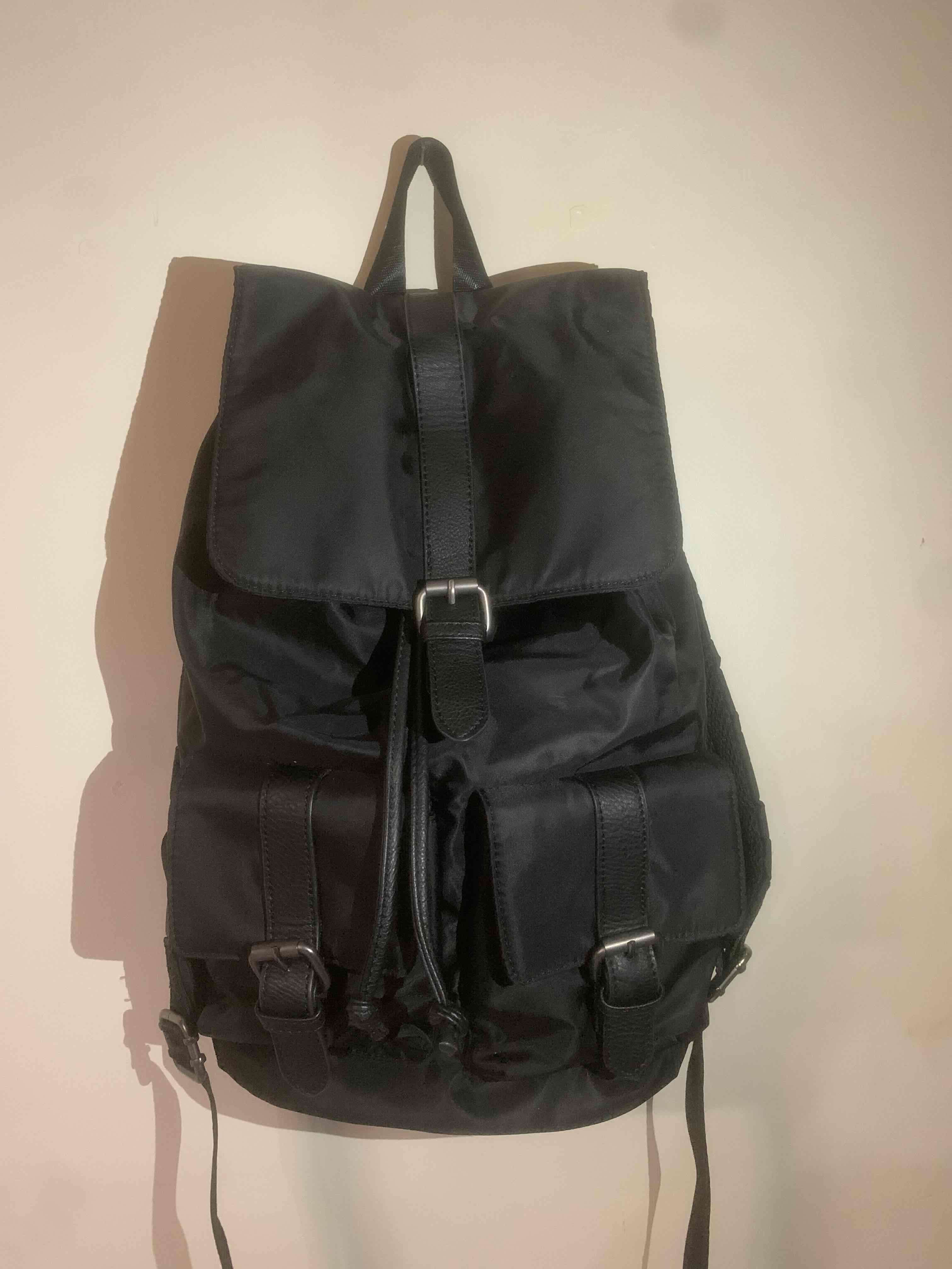 Mochila negra con bolsillos frontales. Ideal para uso diario. En buen estado.