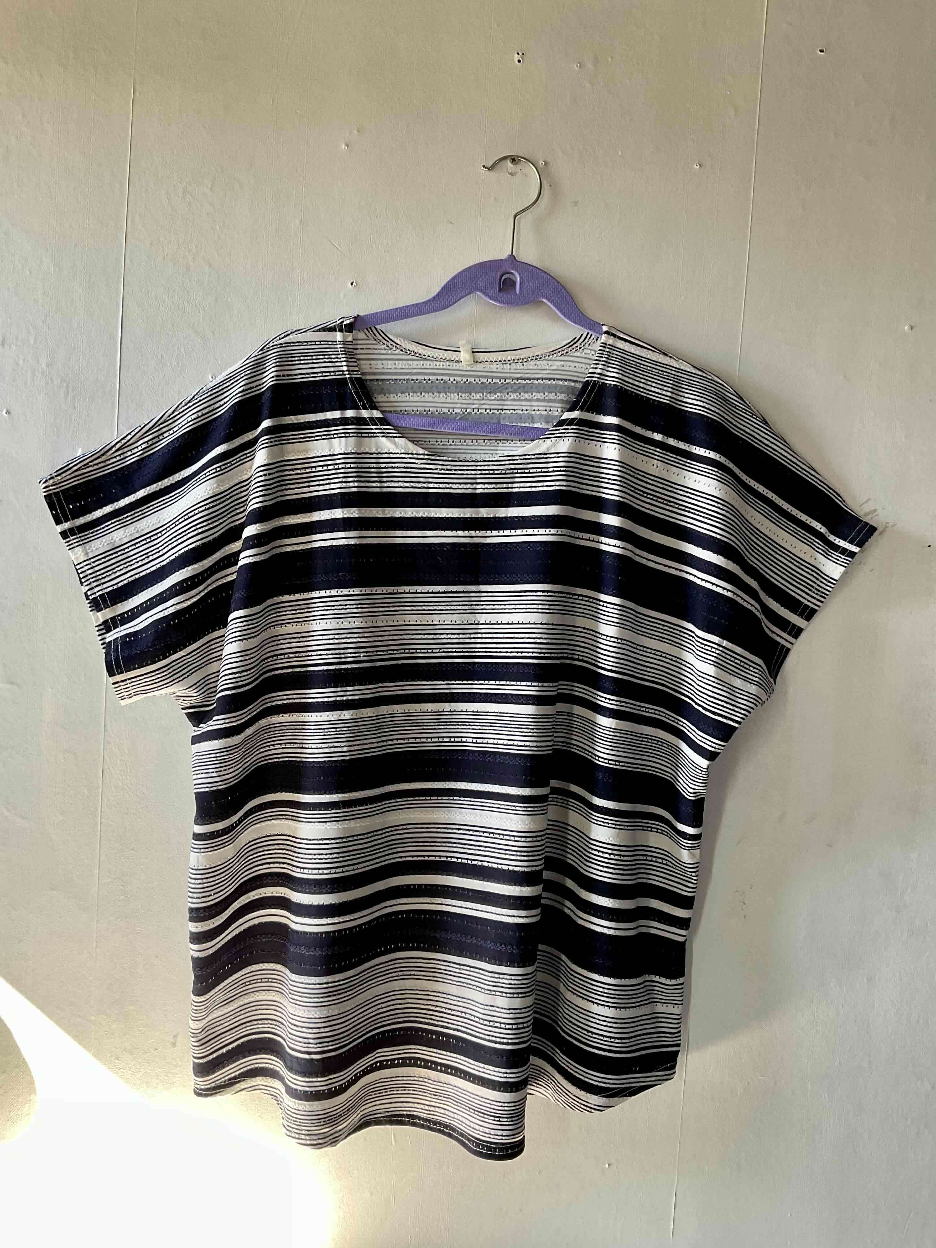 Polera con diseño a rayas, ideal para un look casual. Buen estado general, muestra leves signos de uso.