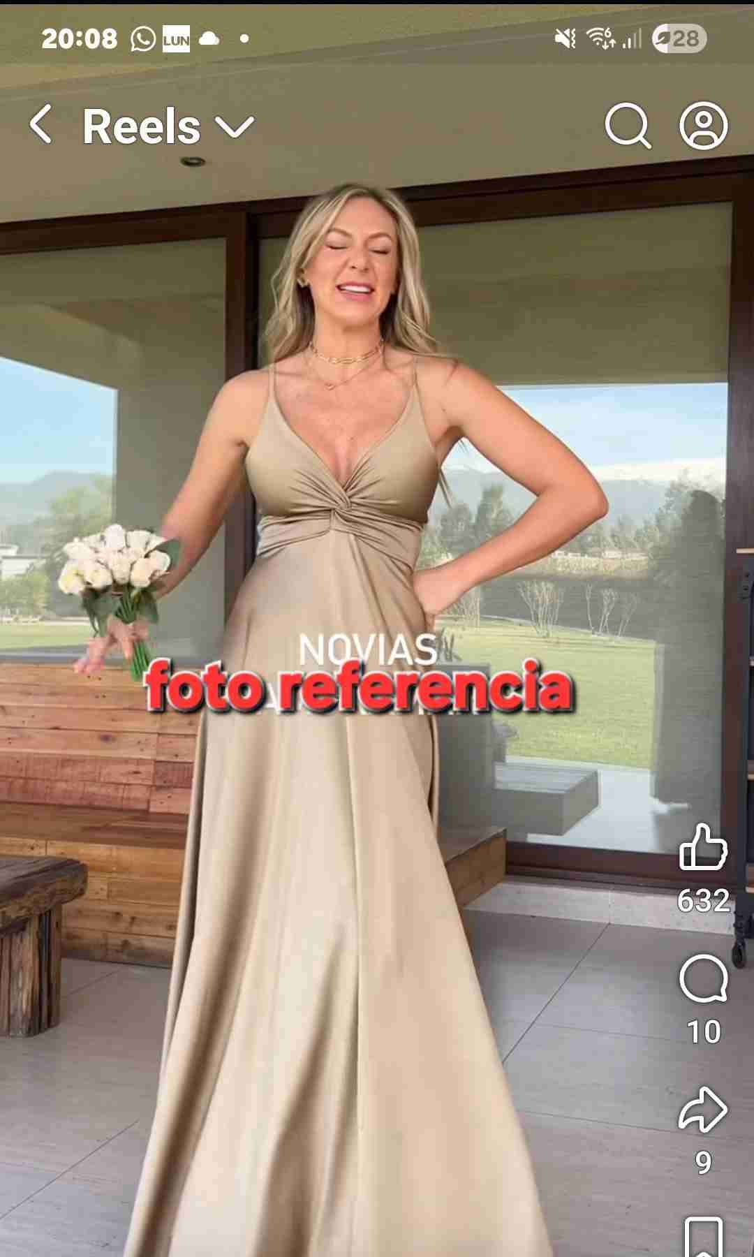 Elegante vestido largo color beige, ideal para ocasiones especiales. Estado impecable, perfecto para un matrimonio o evento formal.