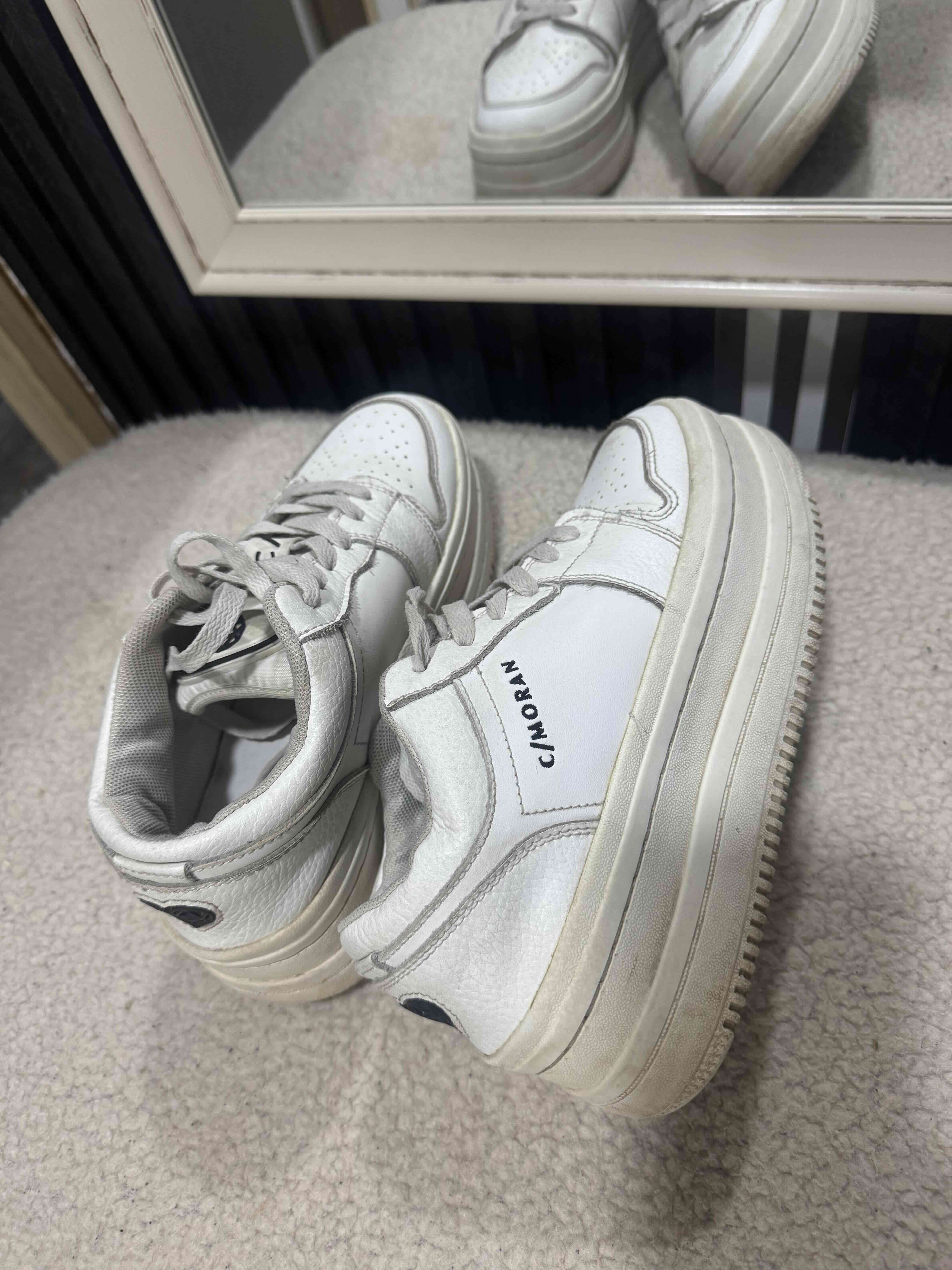 Zapatillas de cuero blancas con plataforma, estilo urbano y cómodo. Buen estado, ideales para un look casual.