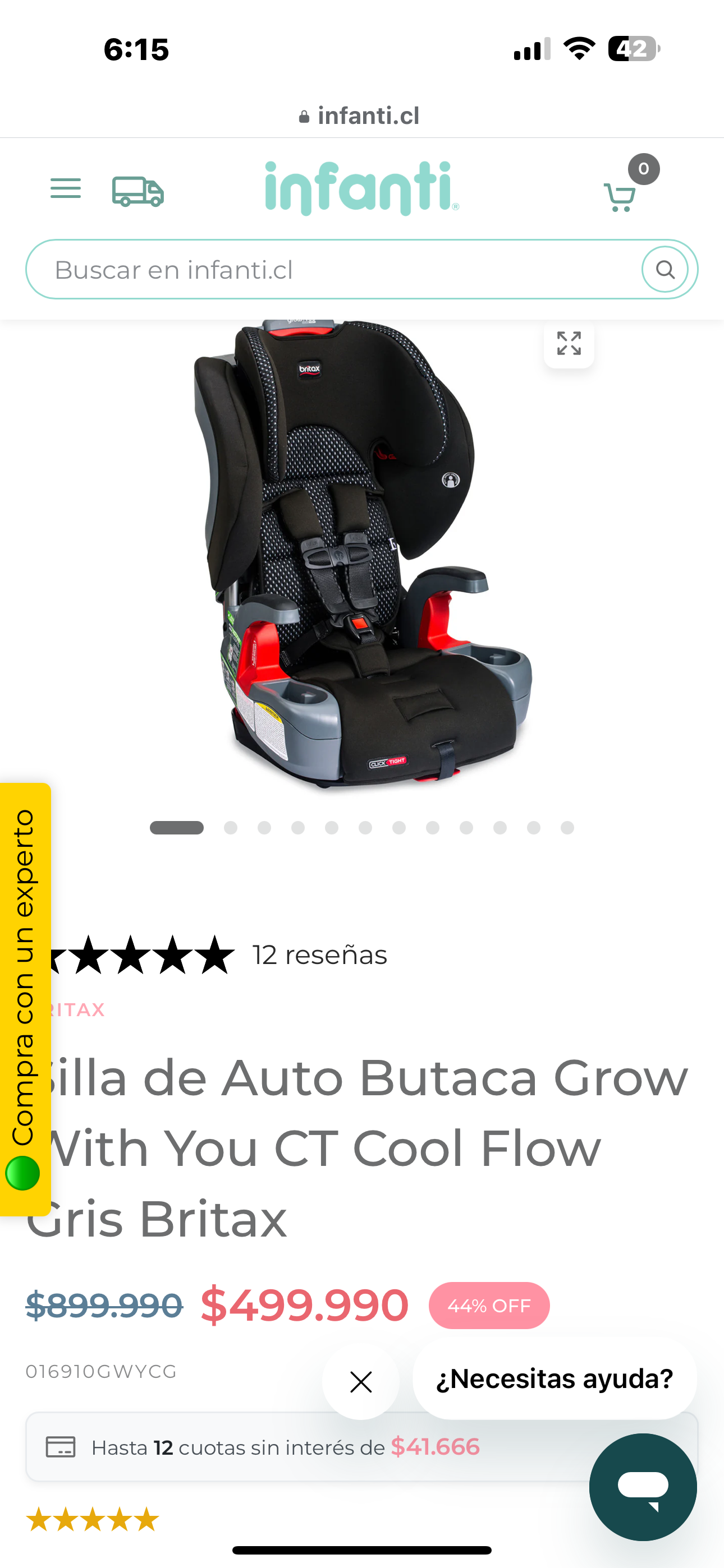 Silla de auto Britax en color negro, ideal para la seguridad infantil. Estado excelente, con diseño cómodo y seguro.
