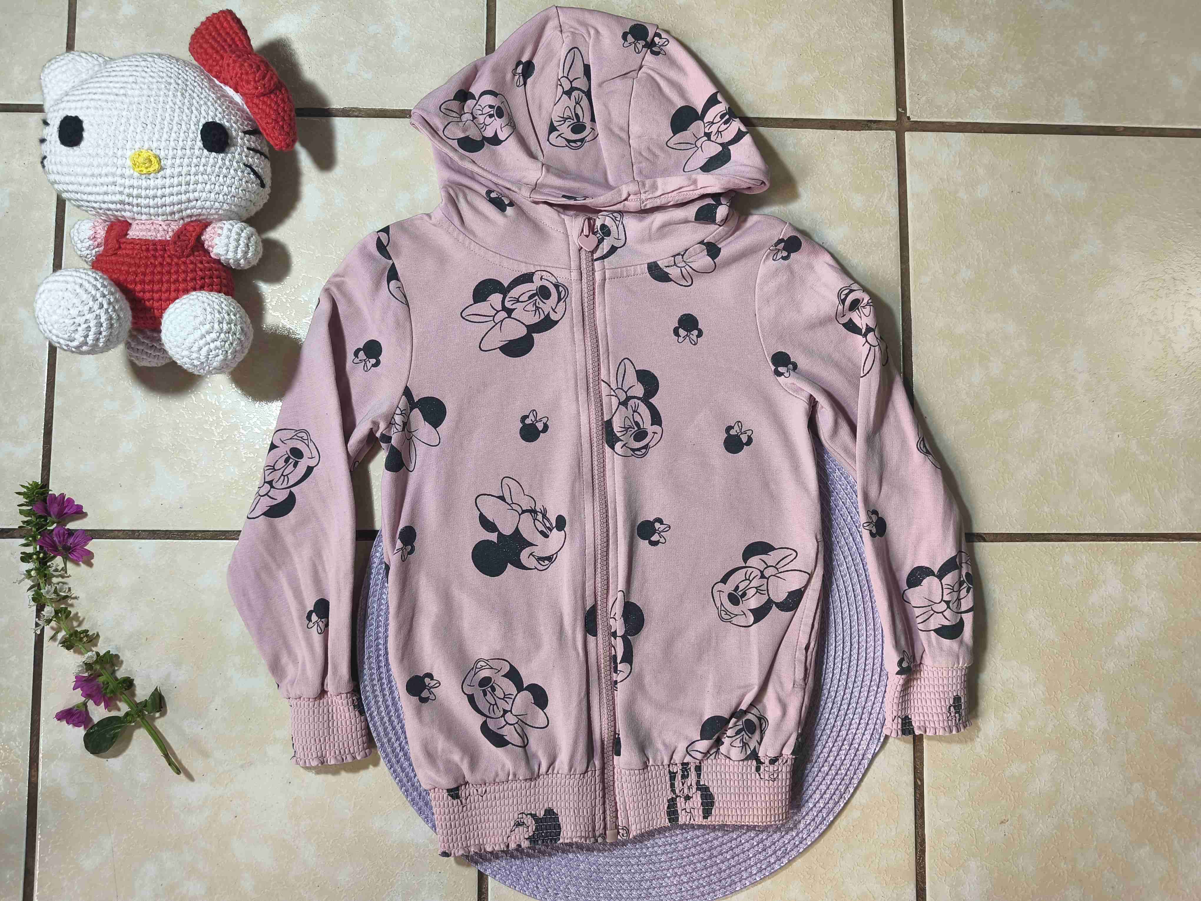 Buzo infantil rosa con diseño de Minnie Mouse, ideal para días frescos. En buen estado, perfecto para el día a día. Talla 2-4 años, rosa pastel, hermoso