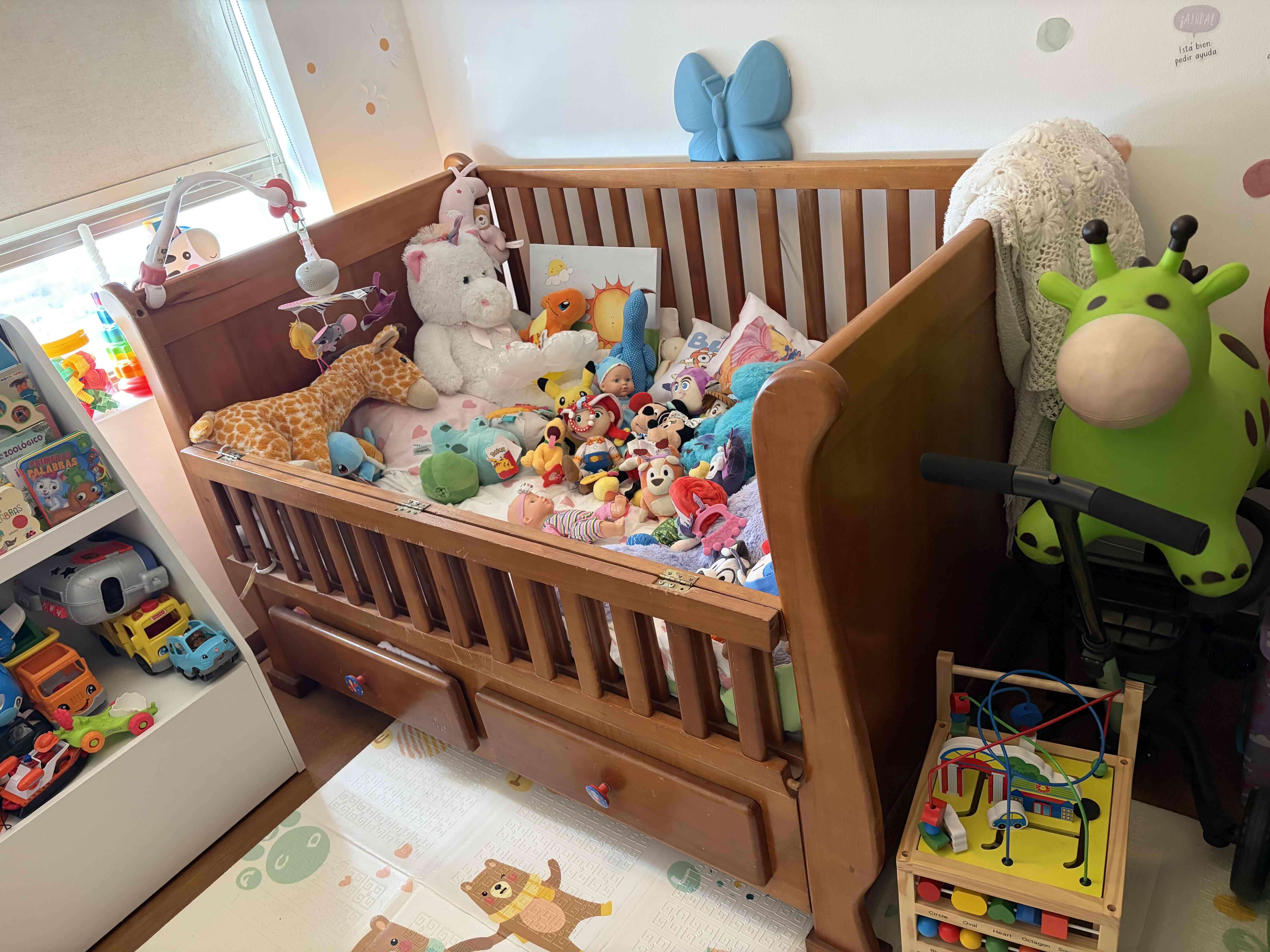 Cuna robusta de madera se convierte en cama Ideal para habitación de bebé.