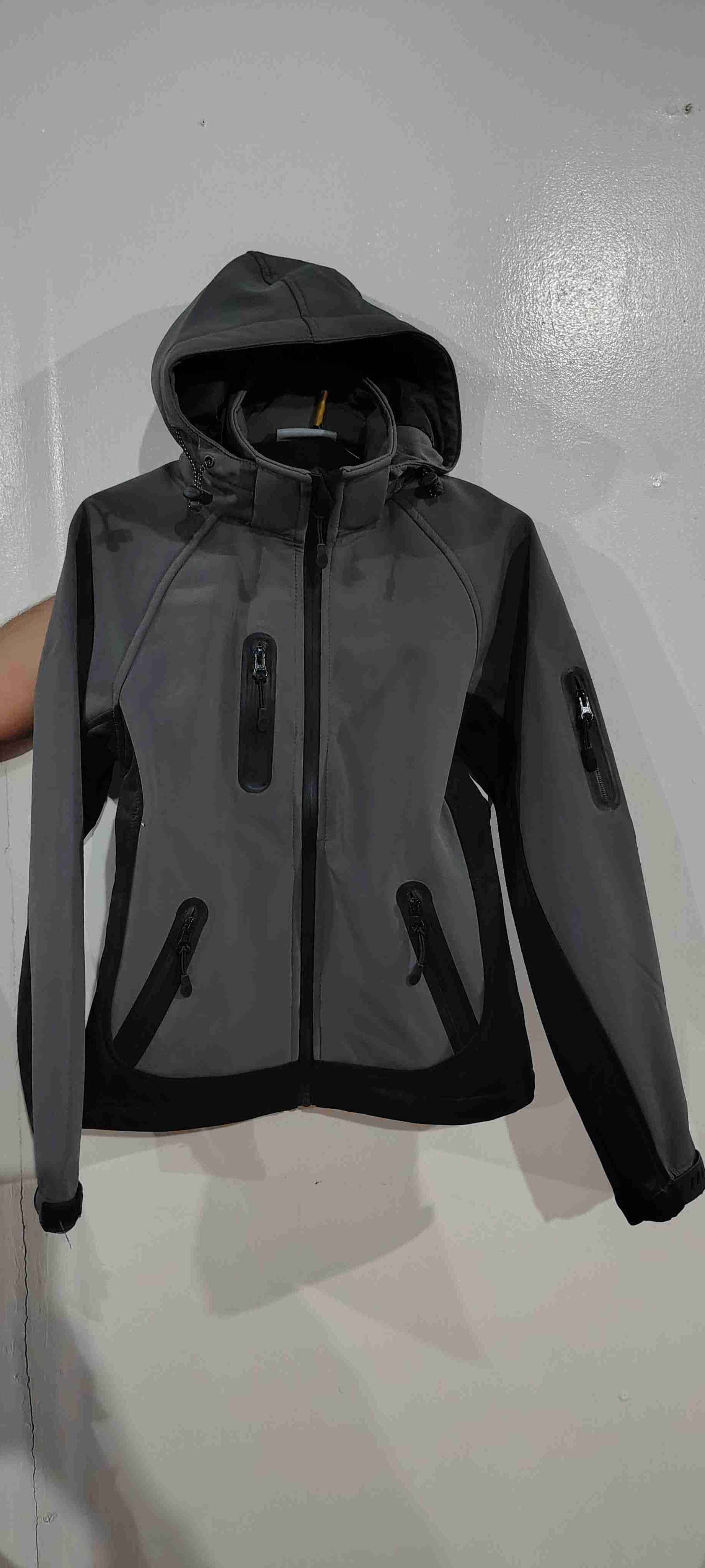 Chaqueta gris con capucha ajustable, ideal para clima frío. En buen estado, cómoda y práctica para uso diario.