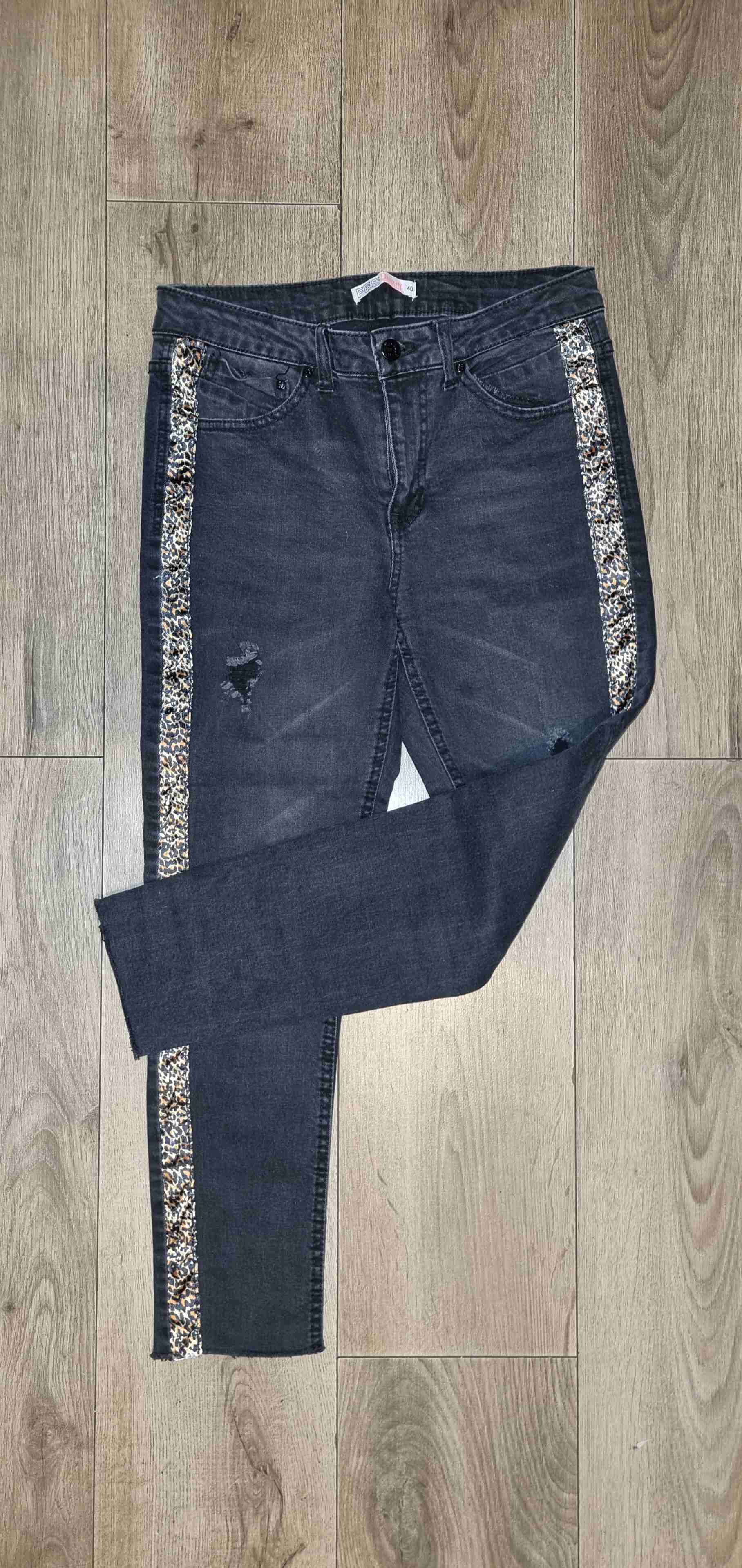 Jeans ajustados negros con detalles de estampado animal print. En muy buen estado general, ideal para looks casuales. Excelente estado 👌