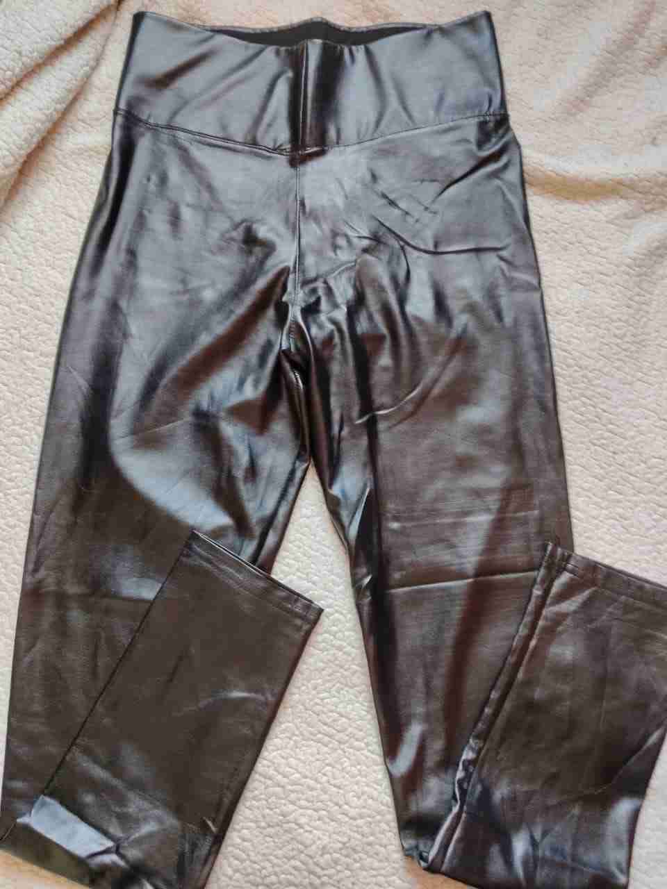 Elegantes leggings de cuero sintético en color negro. Ideales para un look moderno y casual, talla XL.