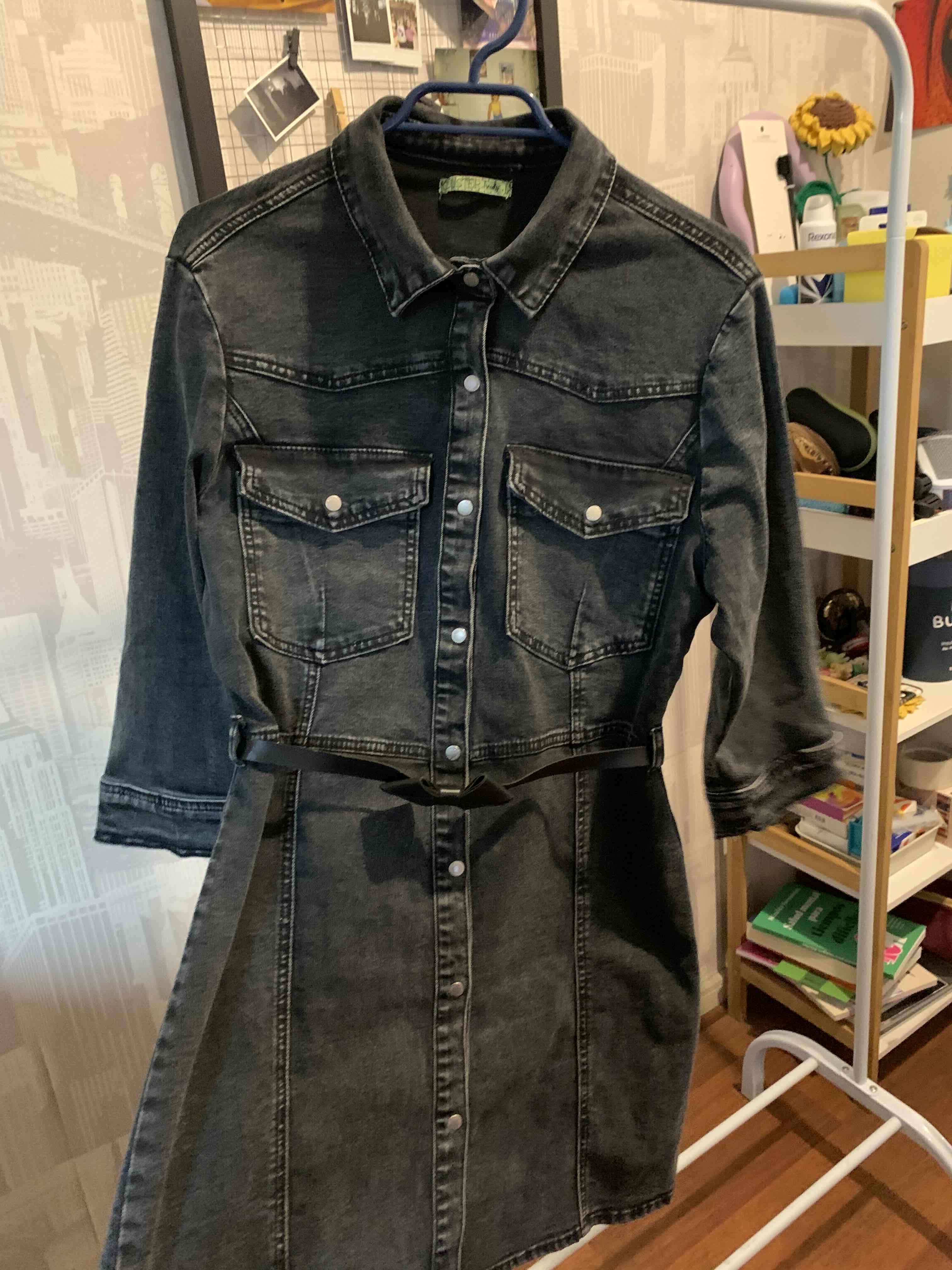 Vestido de mezclilla negro con botones delanteros y cinturón. dice talla L pero es chico, S o M