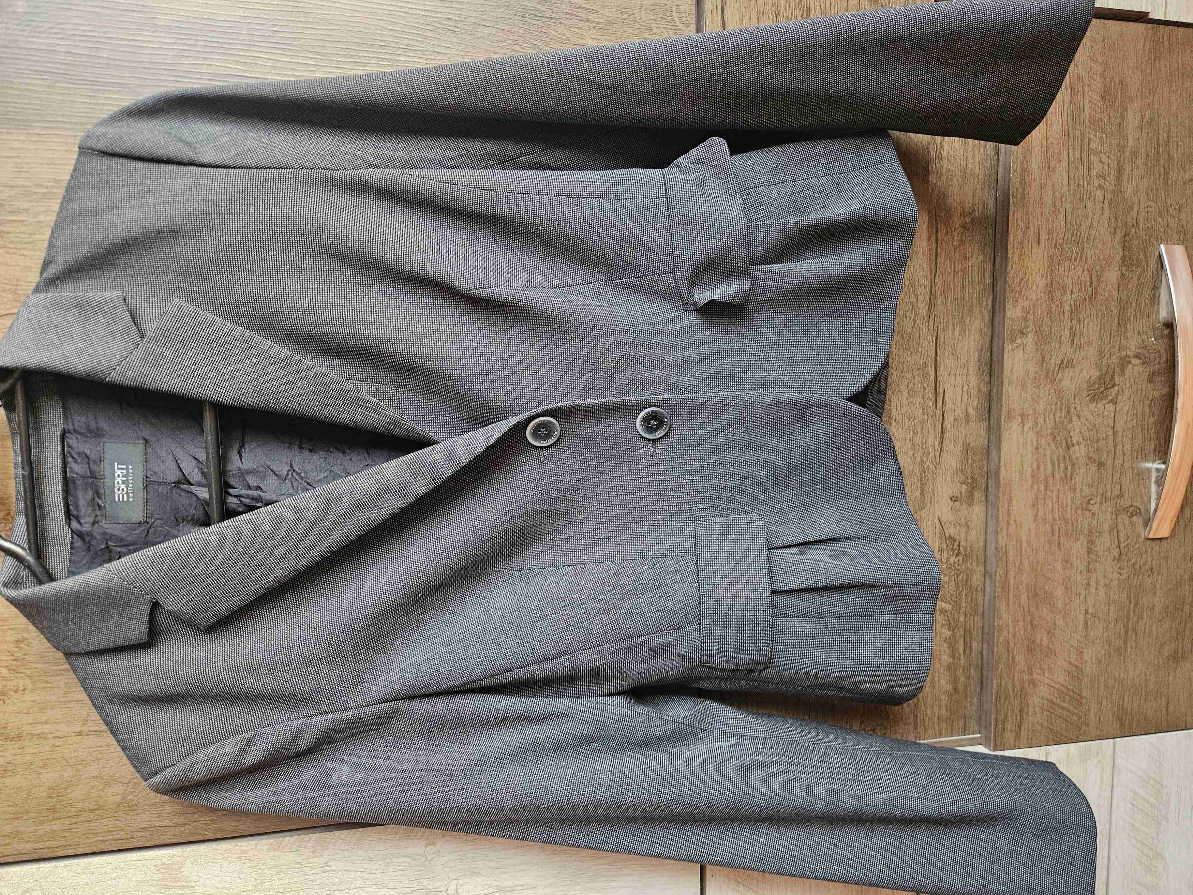 Blazer elegante en gris de tejido fino. Ideal para eventos formales o de oficina, en buen estado general.