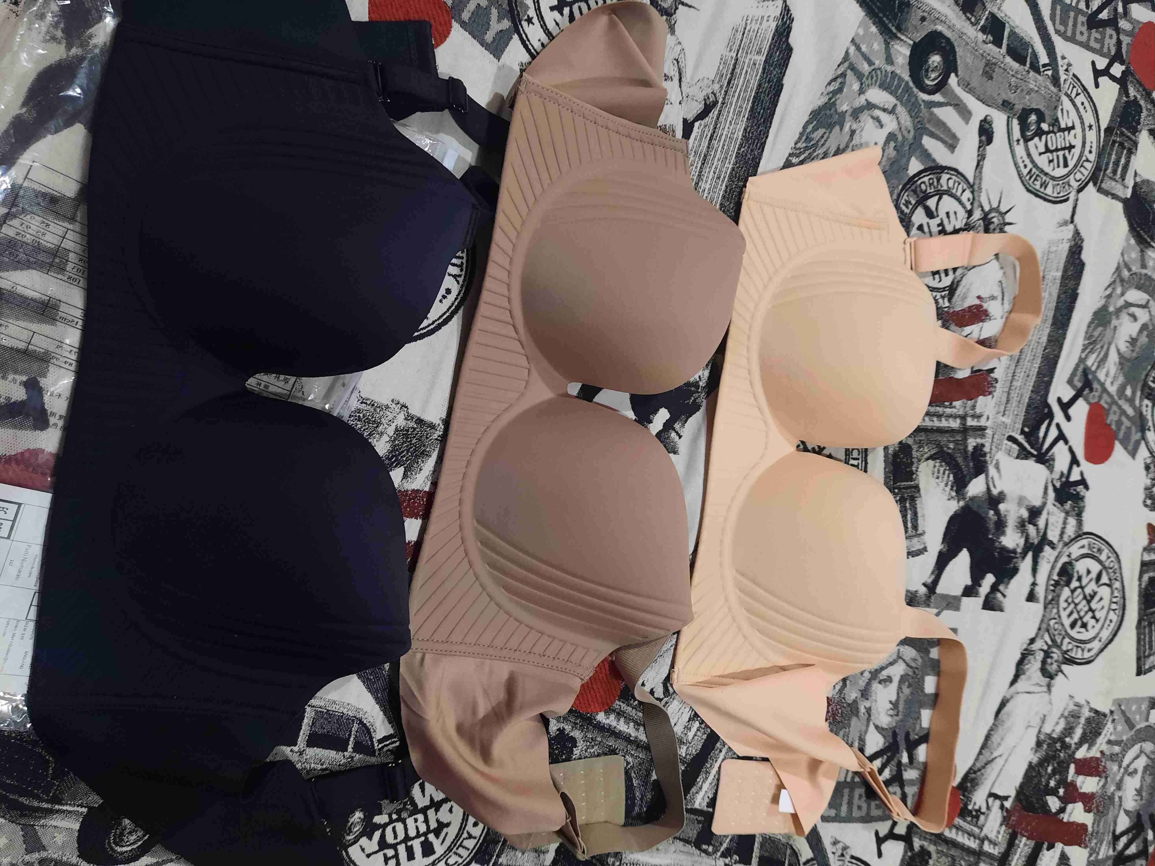 Set de sostenes en tonos negro, beige y crema, ideales para uso diario. Producto nuevo de neopreno Con tirantes anchos, cómodos. Nada que se te encruste en la piel Tirantes firmes y muy cómodos Talla xxl es como un 40C
