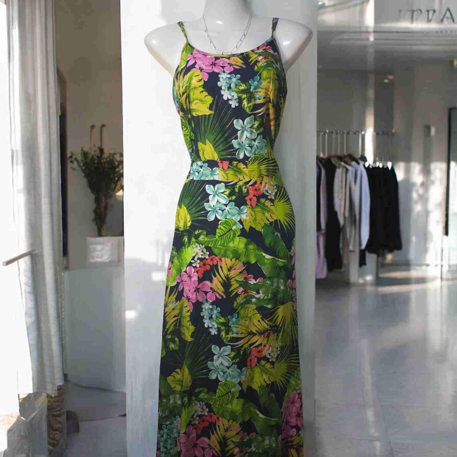Vestido veraniego con estampado de flores tropicales, ideal para días cálidos. Nuevo, talla S.
