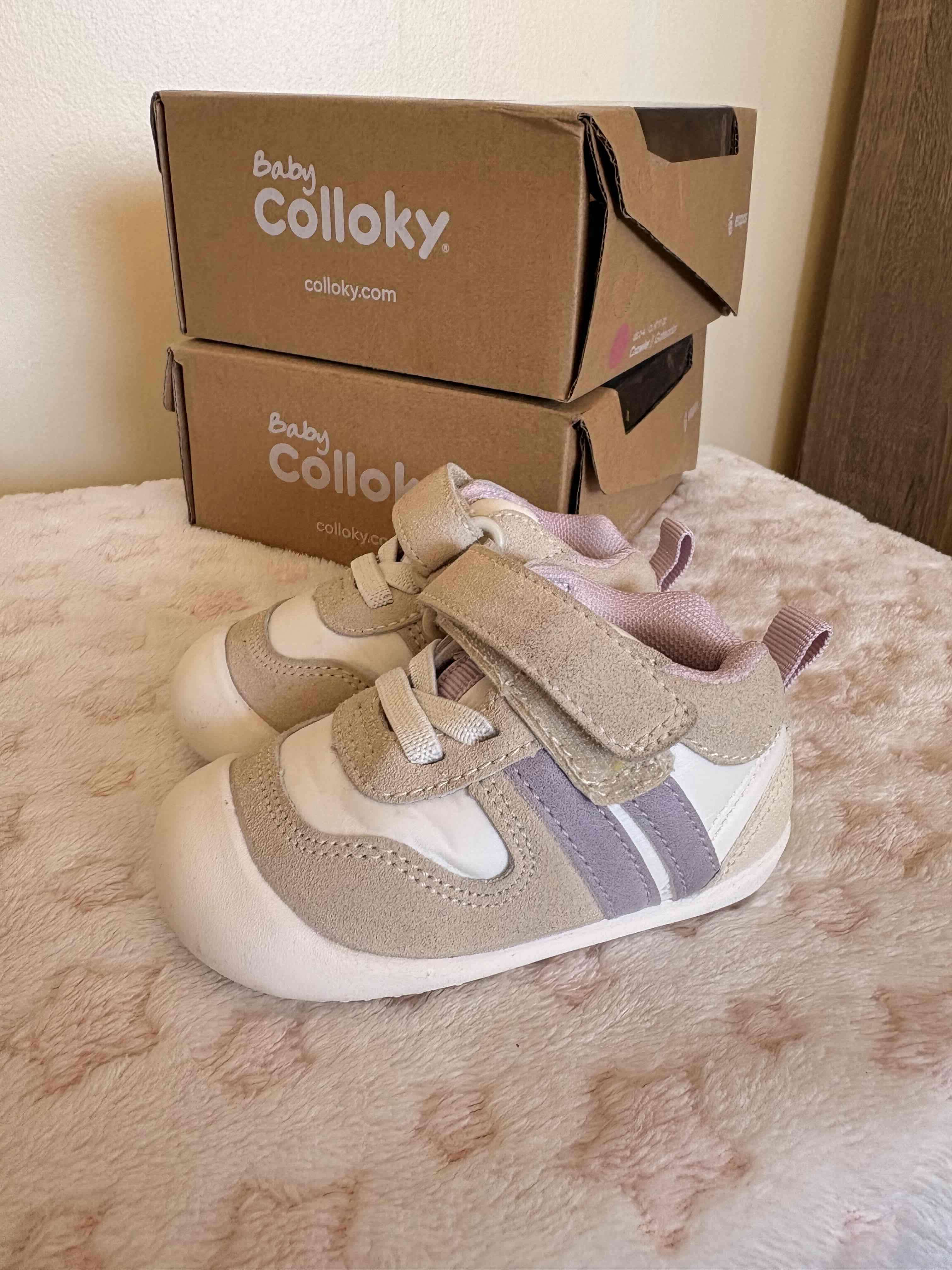 Zapatillas para bebé en color beige y lila. Suave y cómodo, ideal para los primeros pasos. En muy buen estado.