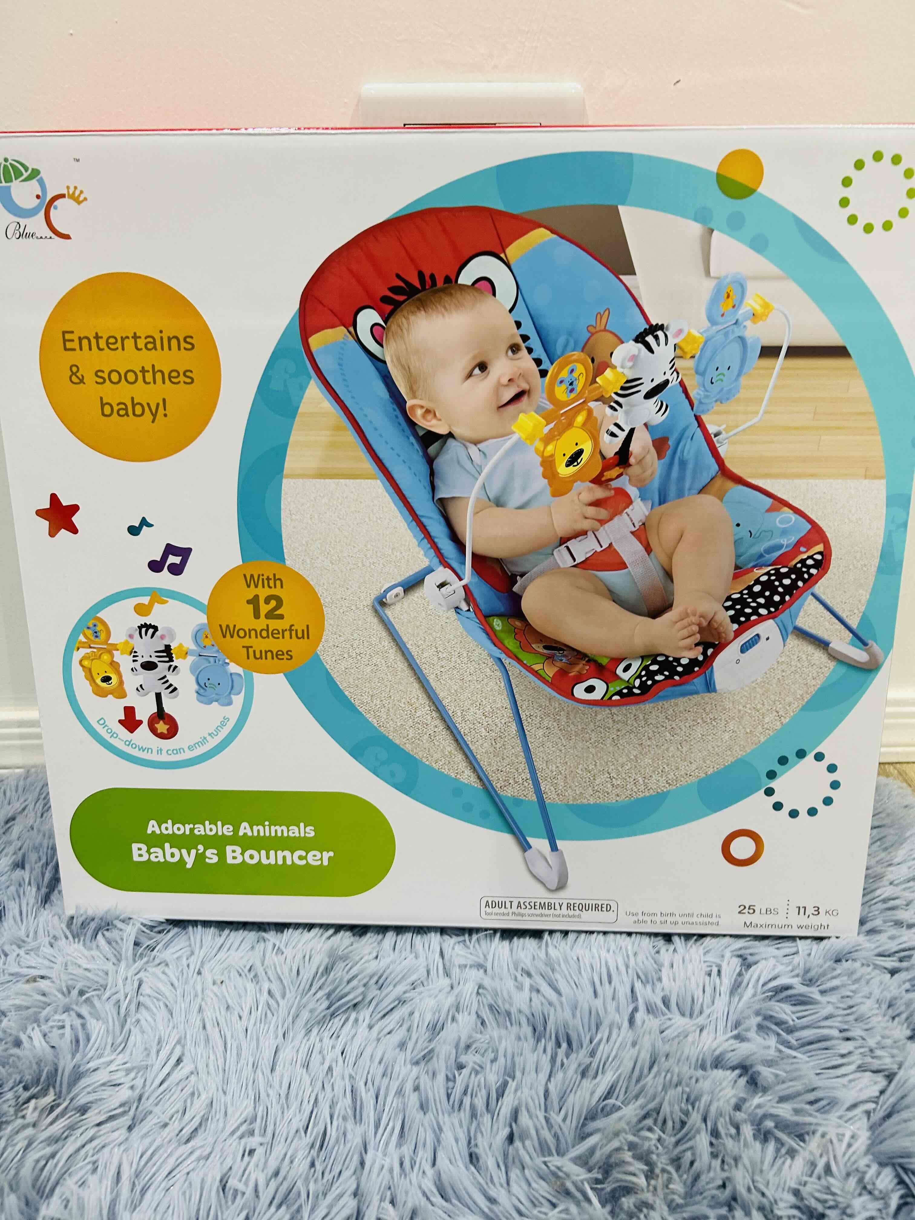 Mecedora para bebé atractivo con juguetes. Ideal para entretener y calmar al bebé.