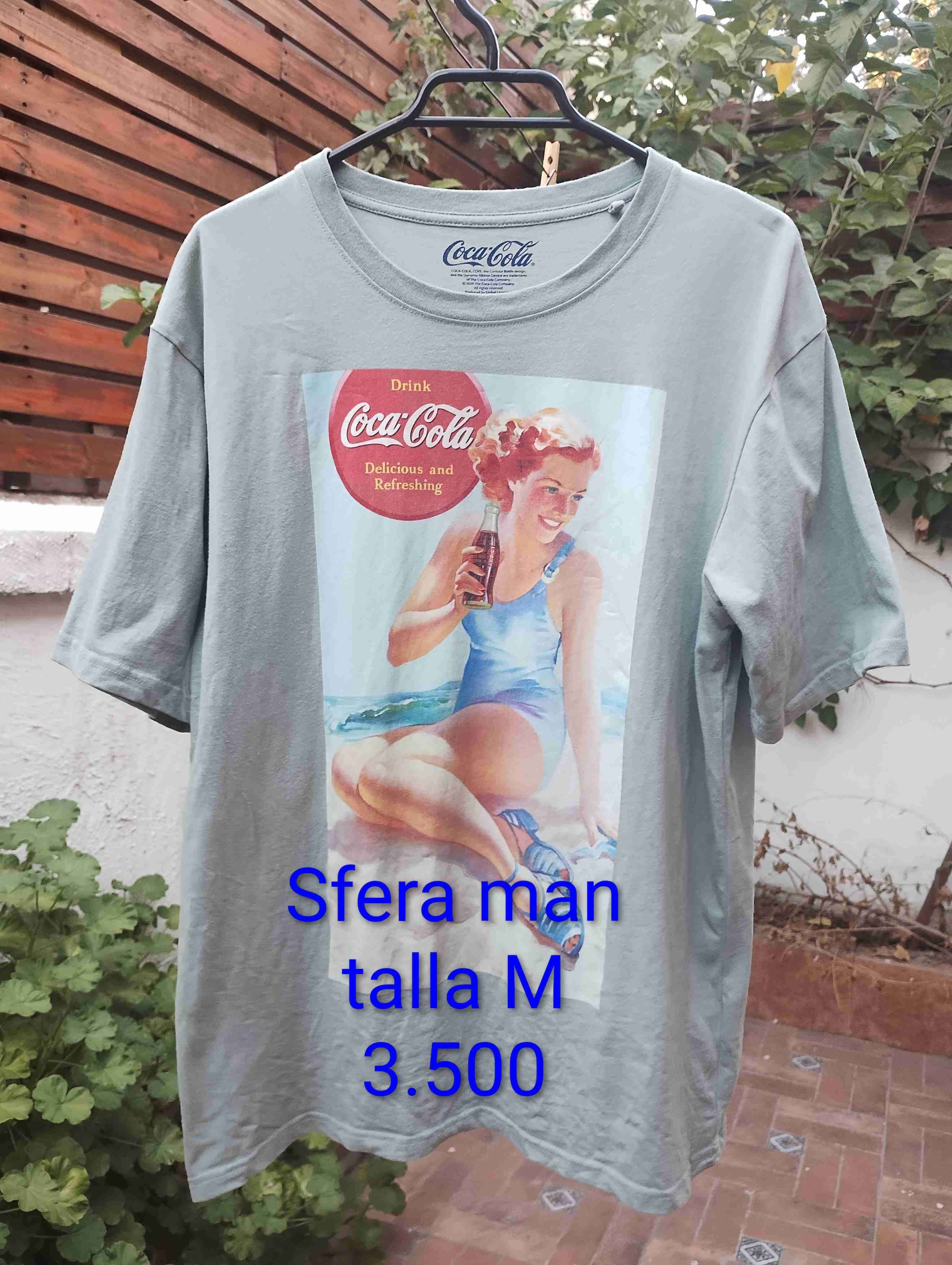 Polera celeste con diseño vintage de Coca-Cola, ideal para un look casual. En buen estado, talla M.