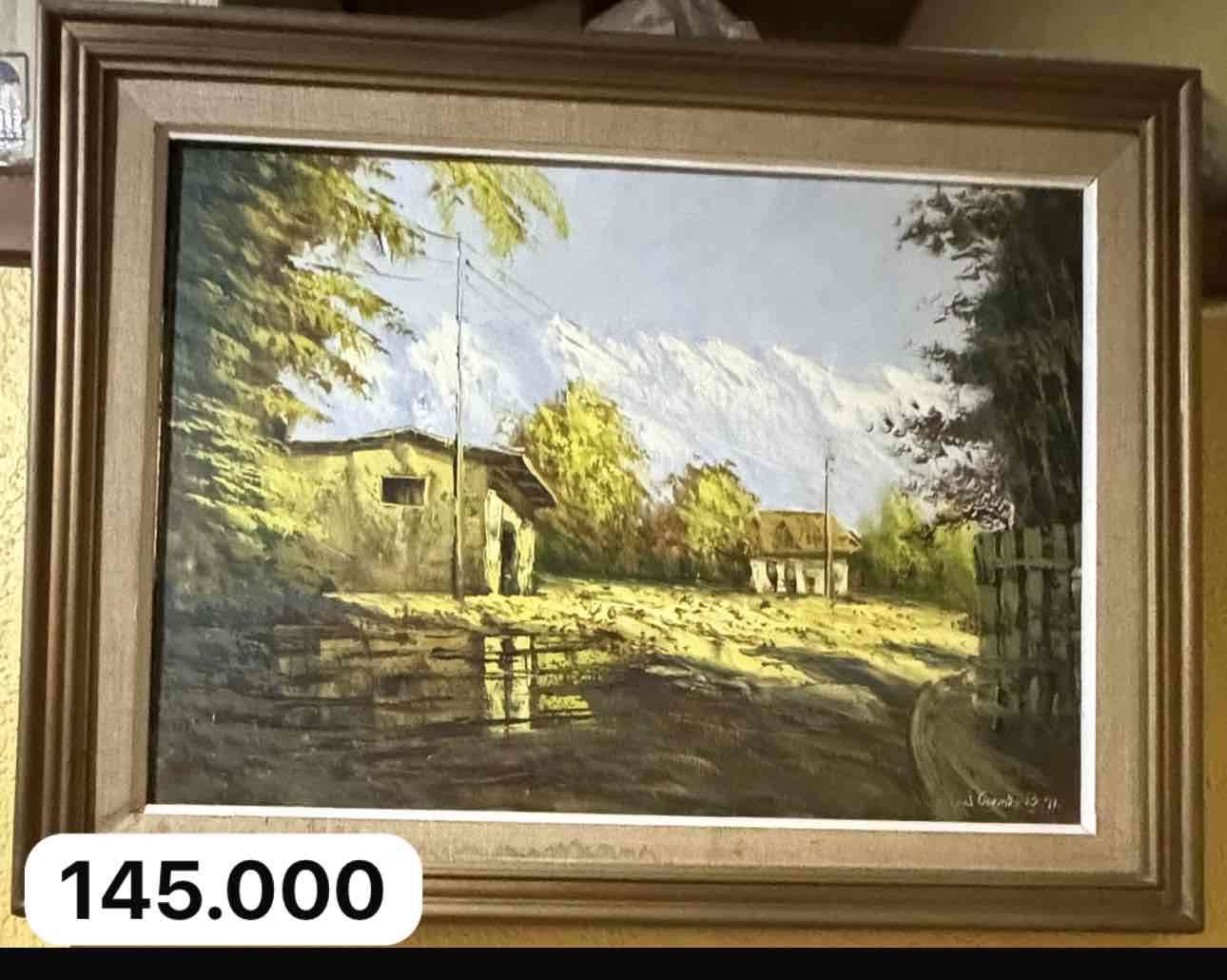 Pintura de paisaje rural bien enmarcada, ideal para la decoración del hogar. En buen estado general.