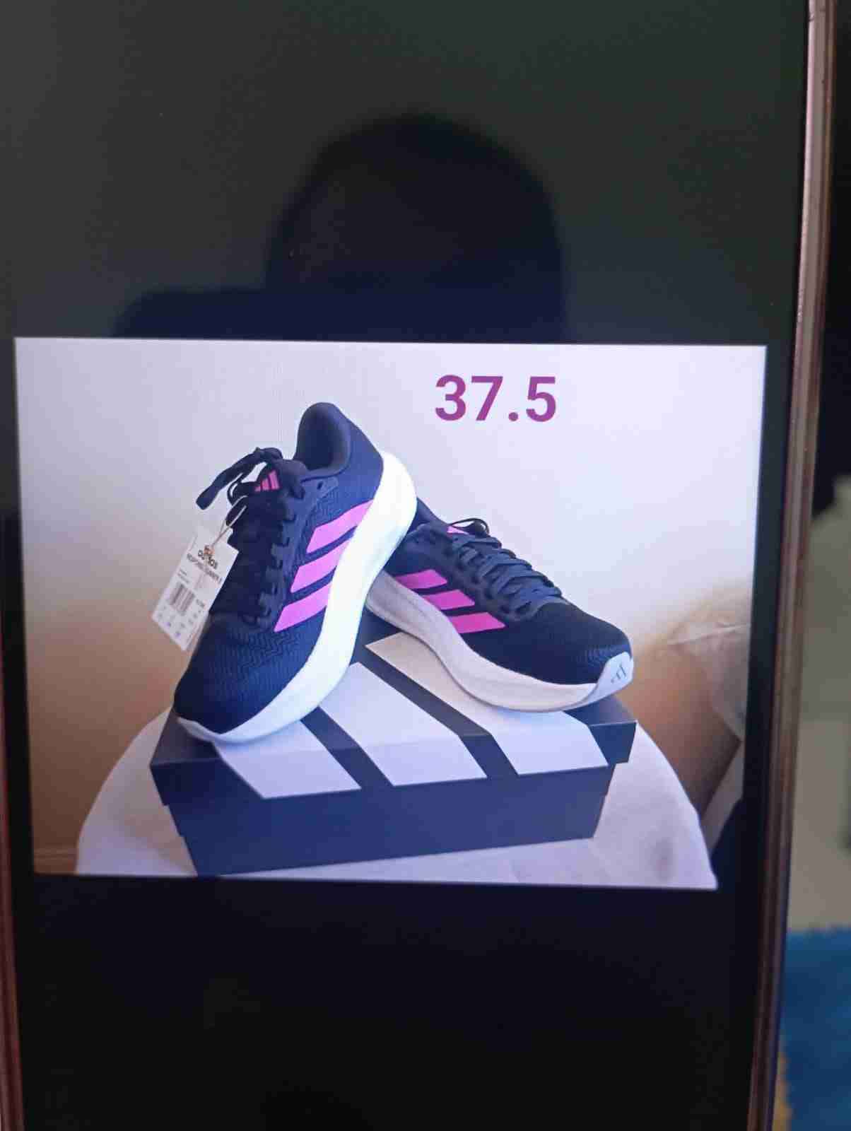 Zapatillas deportivas talla 37.5, en color negro con detalles rosas. Ideales para correr o uso diario.