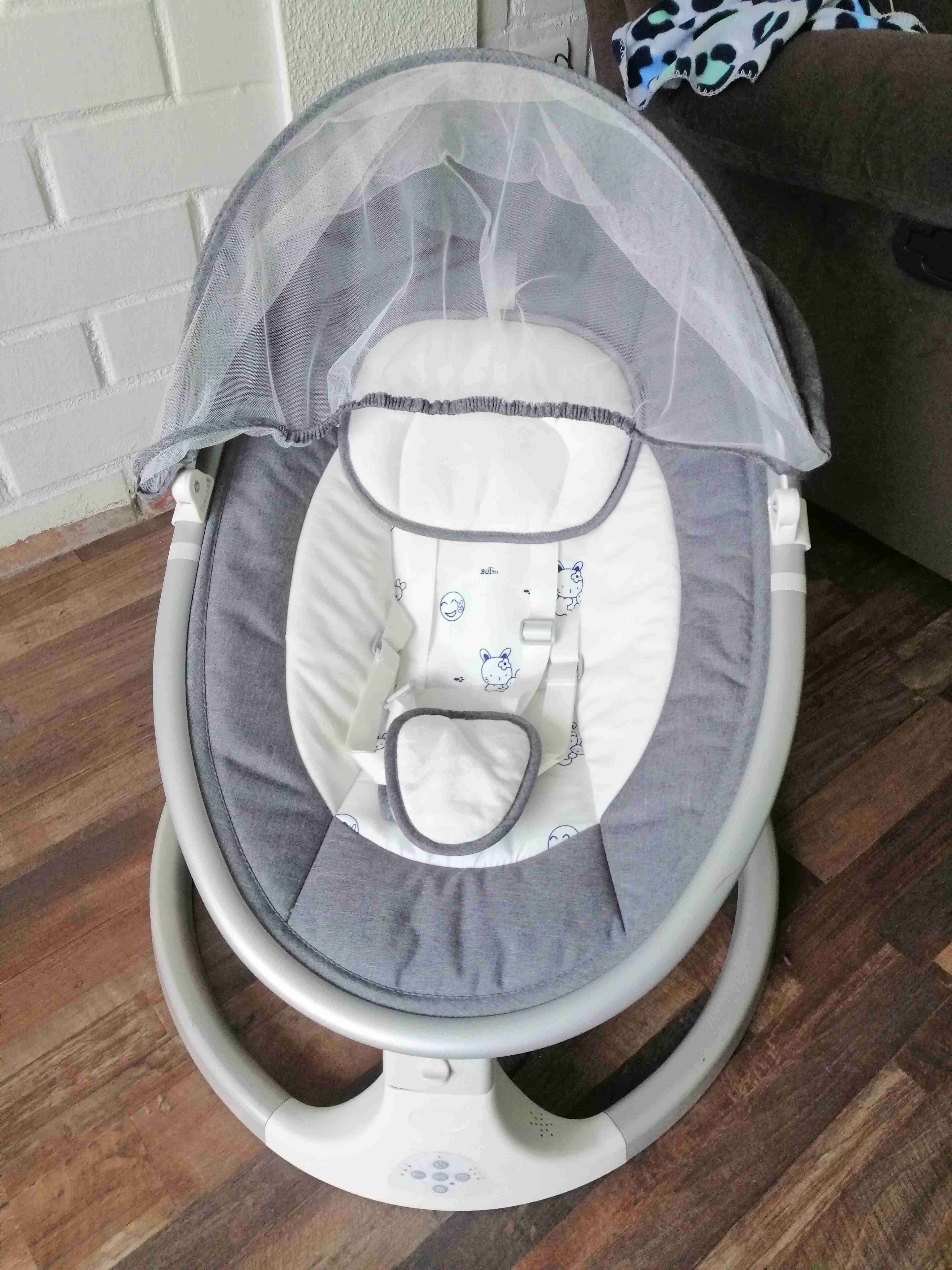 Cuna mecedora gris con toldo