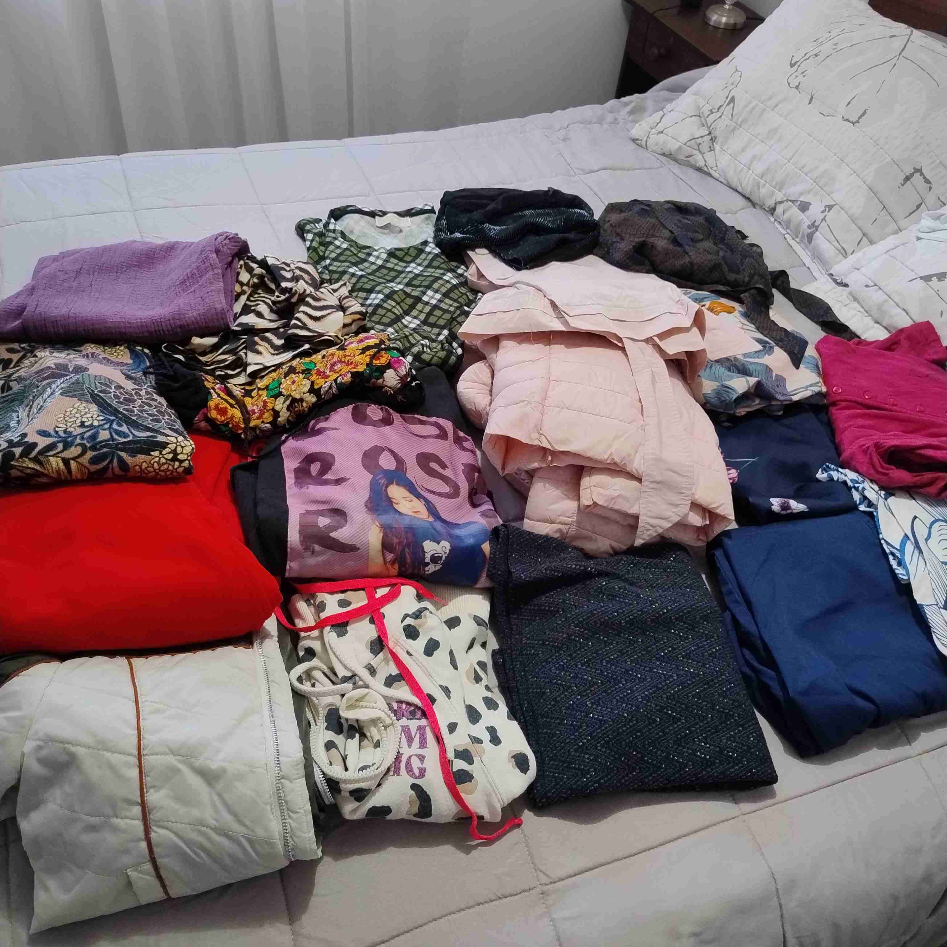 Amplio lote de ropa de mujer en buen estado, ideal para cambiar de look. Incluye prendas de diferentes estilos y colores.
