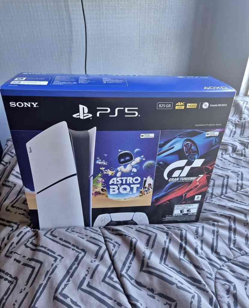 Consola PS5 con capacidad de 825GB, incluye juegos Astro Bot y Gran Turismo 7. En excelente estado y incluye boleta