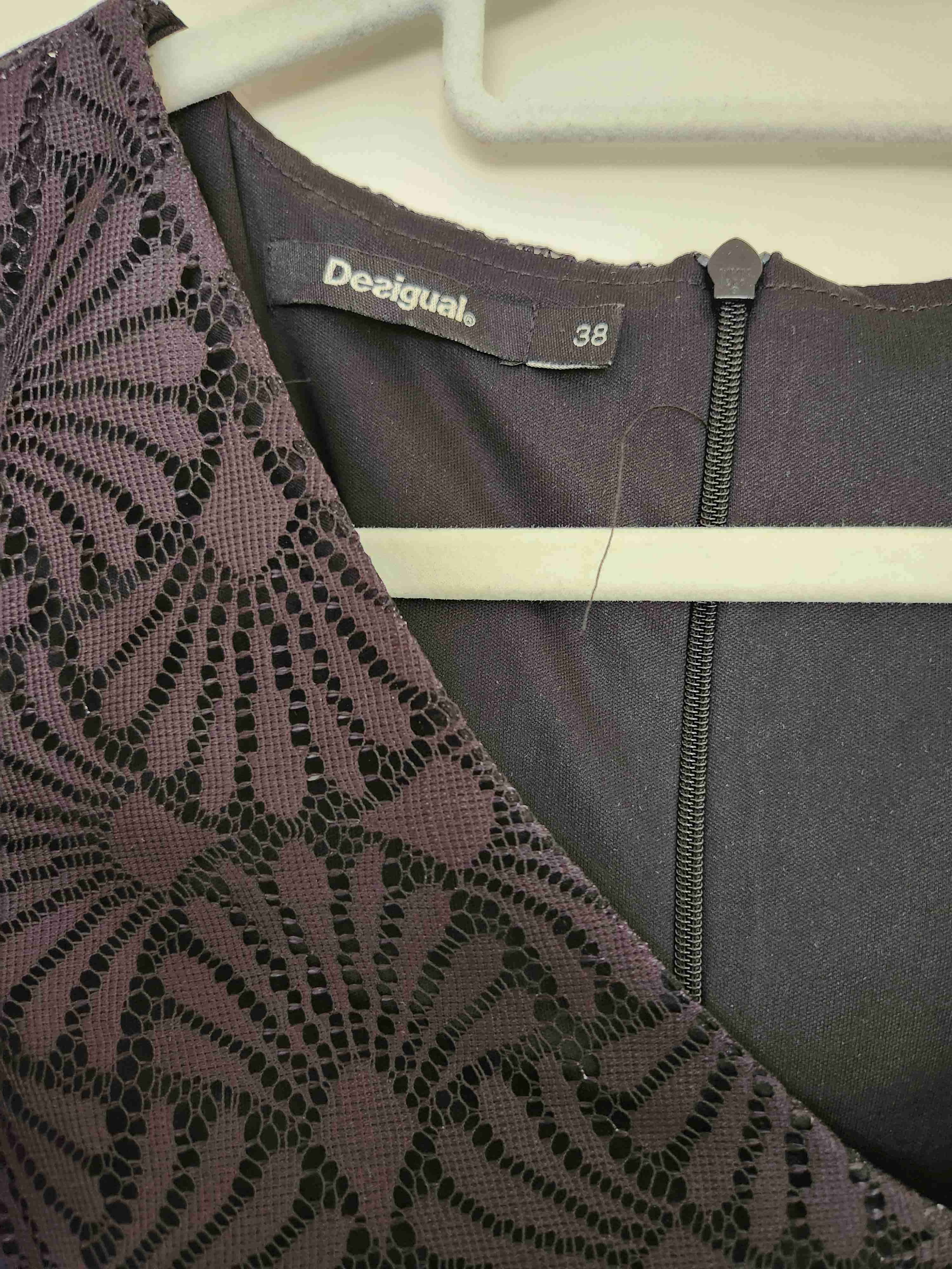 Elegante vestido Desigual negro con encaje floral. Ideal para ocasiones especiales, en buen estado.