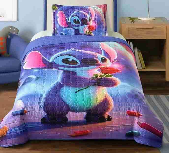Colorida funda de edredón con diseño de Stitch. Perfecta para decorar la habitación de los niños. 1 1/2 Plaza.