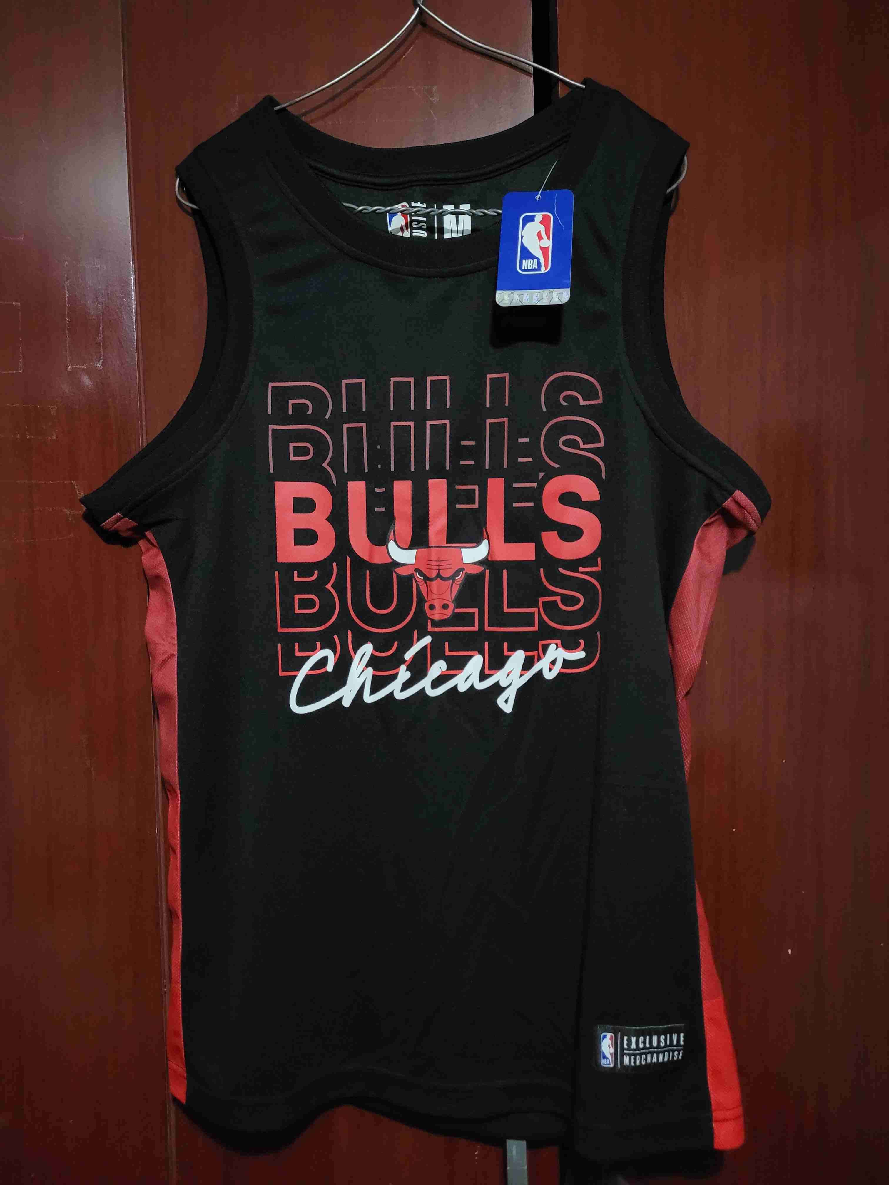 Polera negra sin mangas con diseño de Chicago Bulls. Ideal para fanáticos del básquetbol, en estado nuevo con etiqueta.