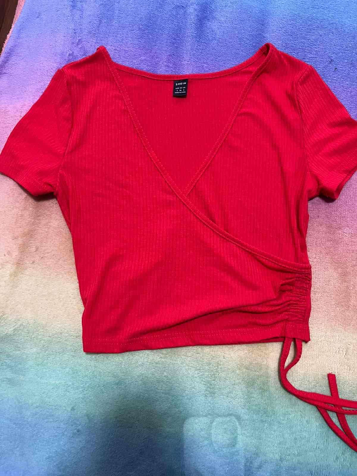 Polera roja de Shein, estilo cruzado. En buen estado, ideal para el verano.