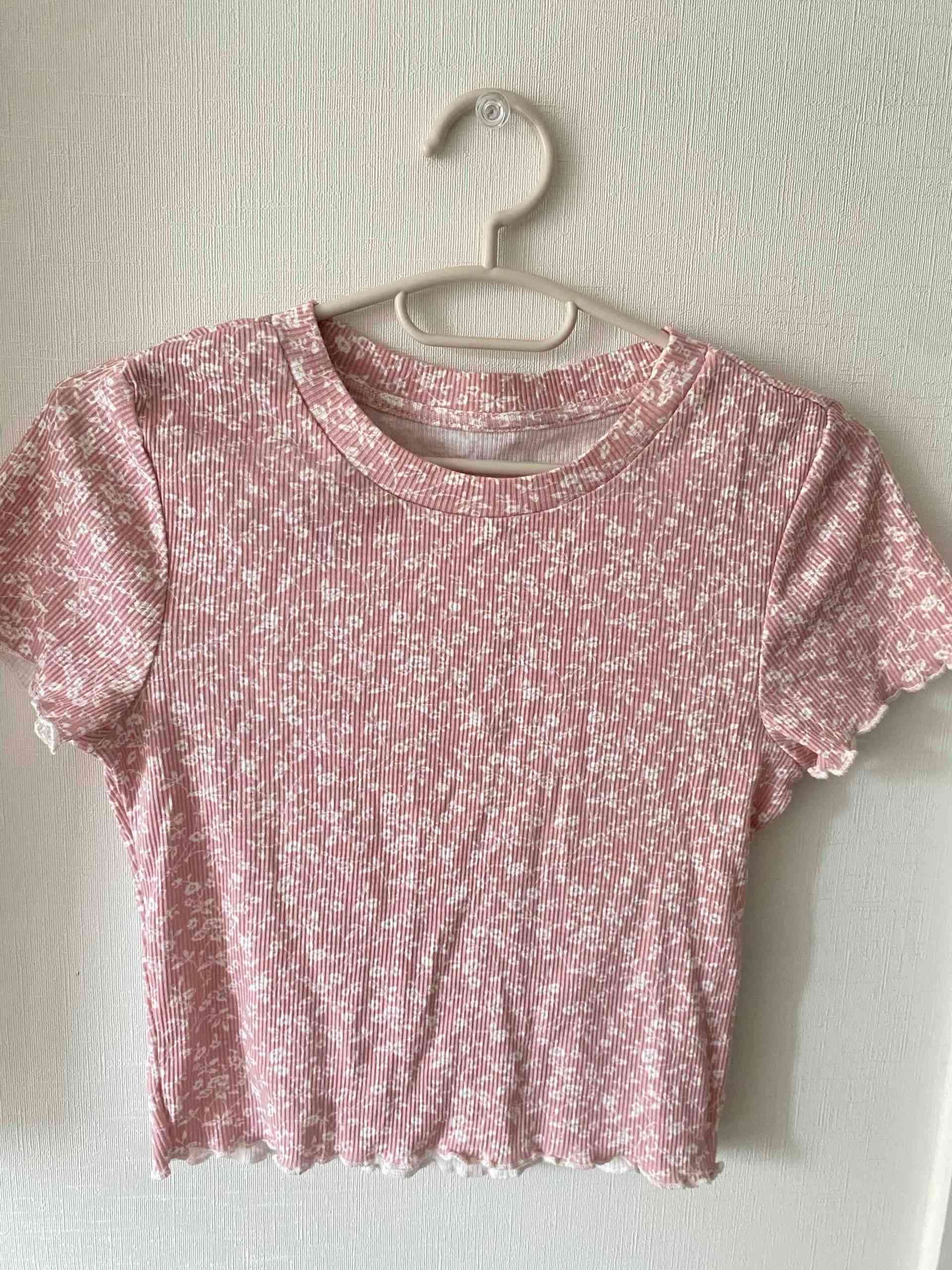 Polera rosada con estampado floral