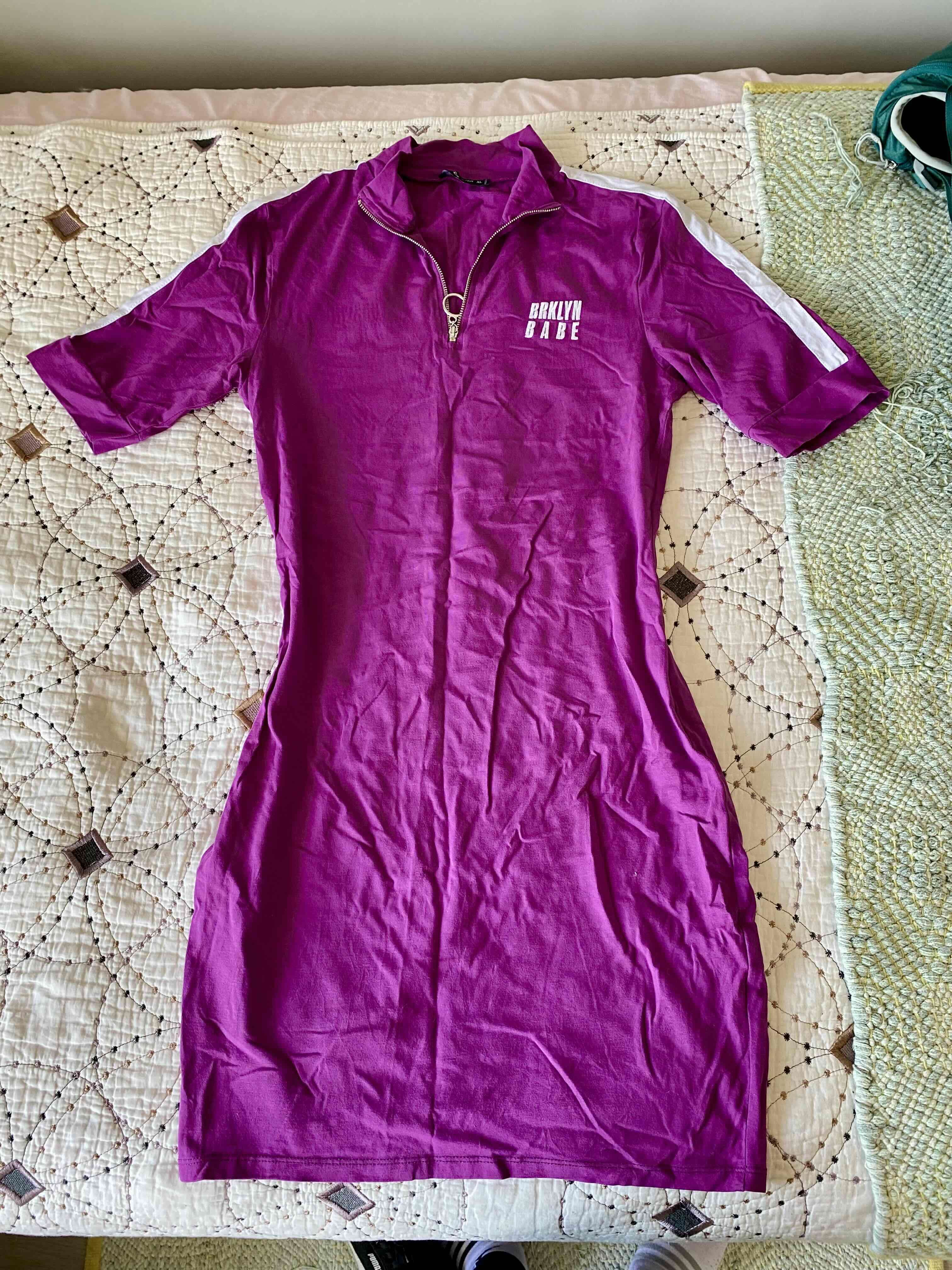 Vestido morado casual con diseño moderno y cremallera. Ideal para ocasiones informales. Buen estado general.