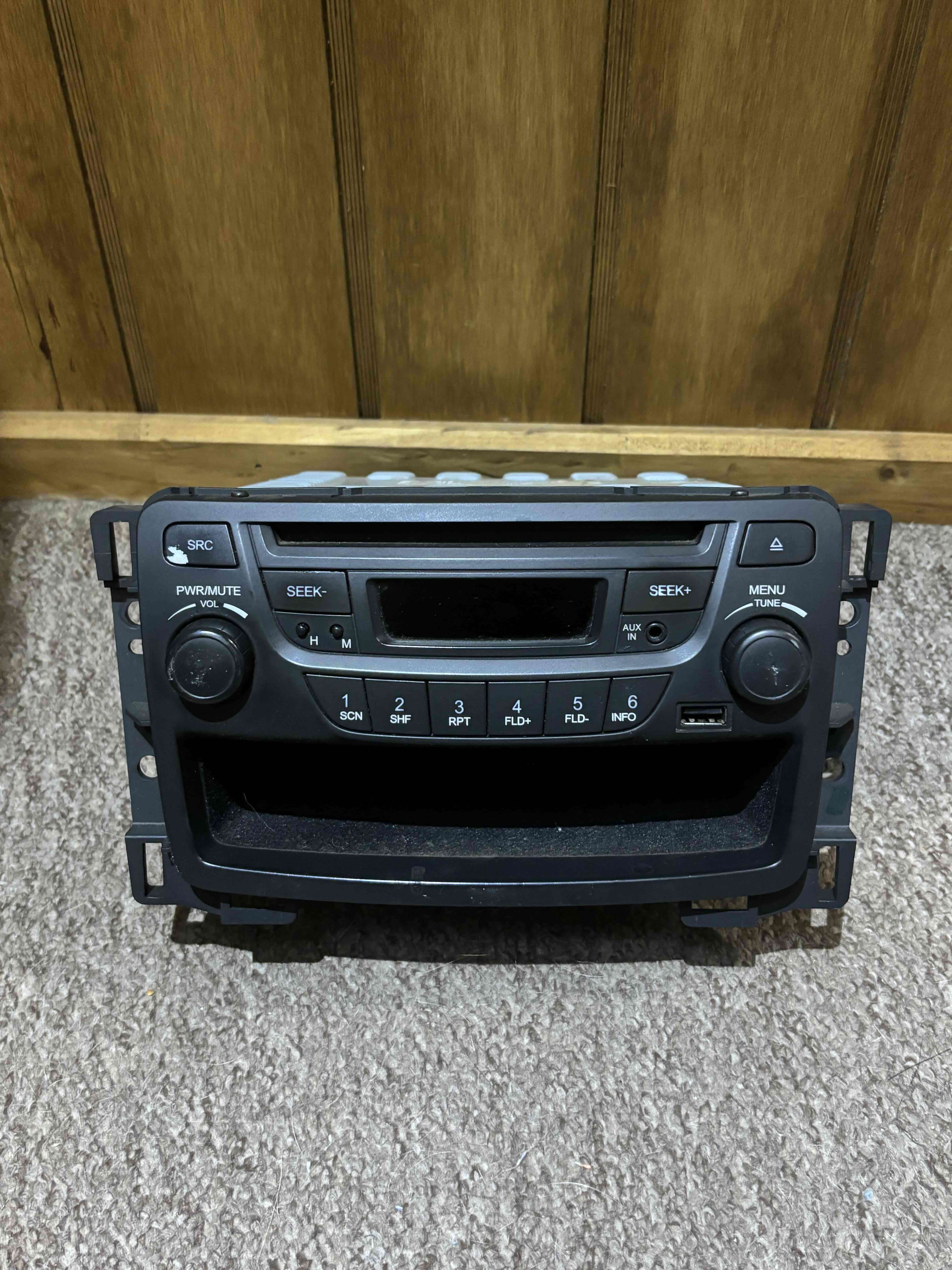 Radio para auto con entrada AUX y controles accesibles. En buen estado, ideal para mejorar tu experiencia de manejo.