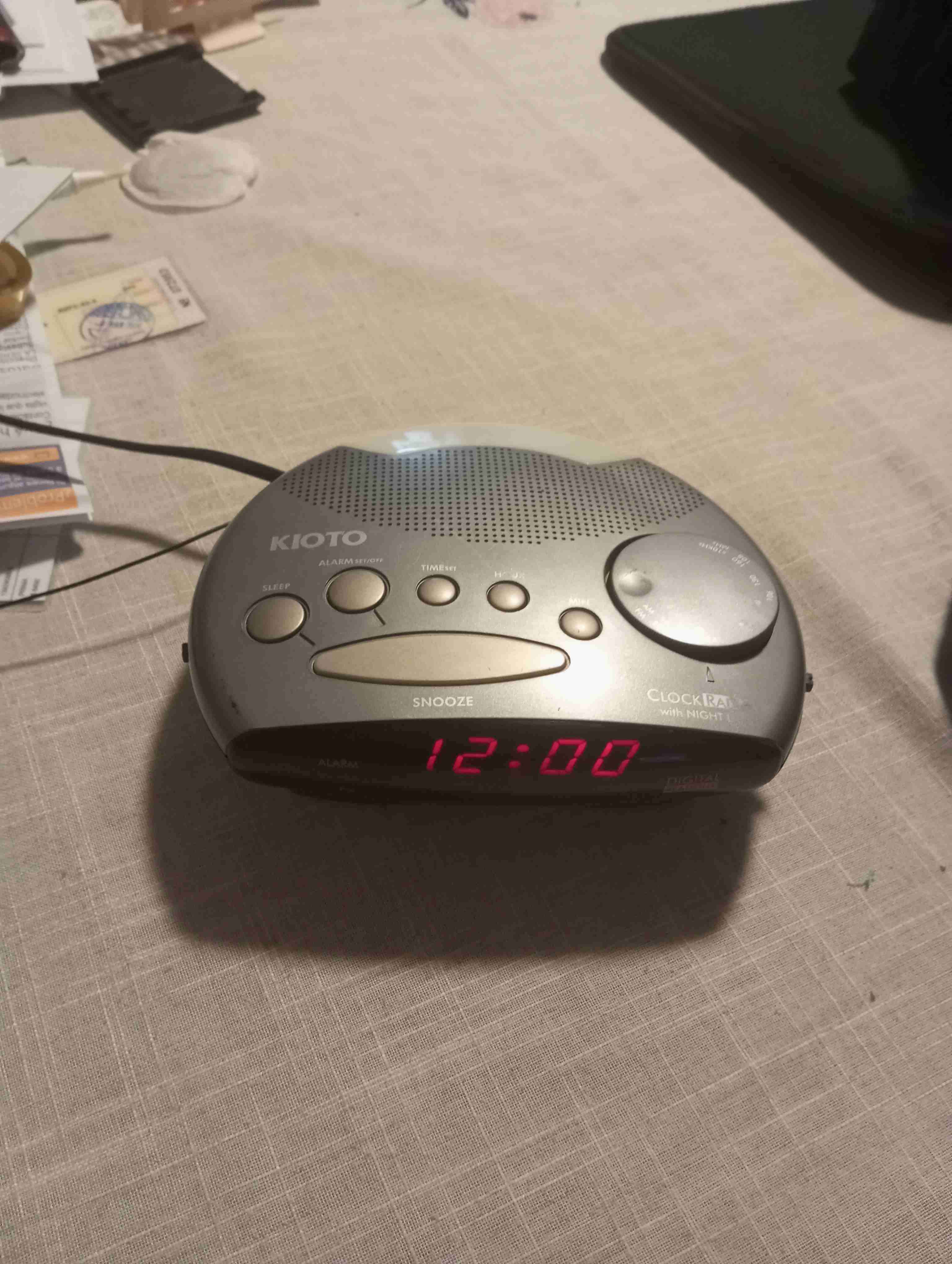 Vendo radio reloj Kioto modelo CR-990. Se encuentra en **condición estética y funcional impecable**, prácticamente sin uso. > * **Estado:** Como nuevo. Ideal para quienes buscan un equipo limpio y bien cuidado para su velador. > * **Características:** Radio AM/FM, alarma, y compartimento para batería de 9V (respaldo ante cortes de luz). > * **Estética:** Carcasa sin rayas ni desgaste, pantalla brillante. > Perfecto para regalo o para uso inmediato.