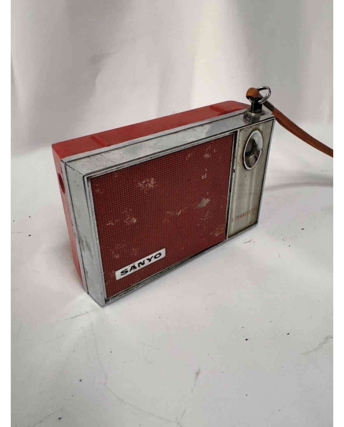 Radio portátil vintage de Sanyo, funcionando. Ideal para coleccionistas.