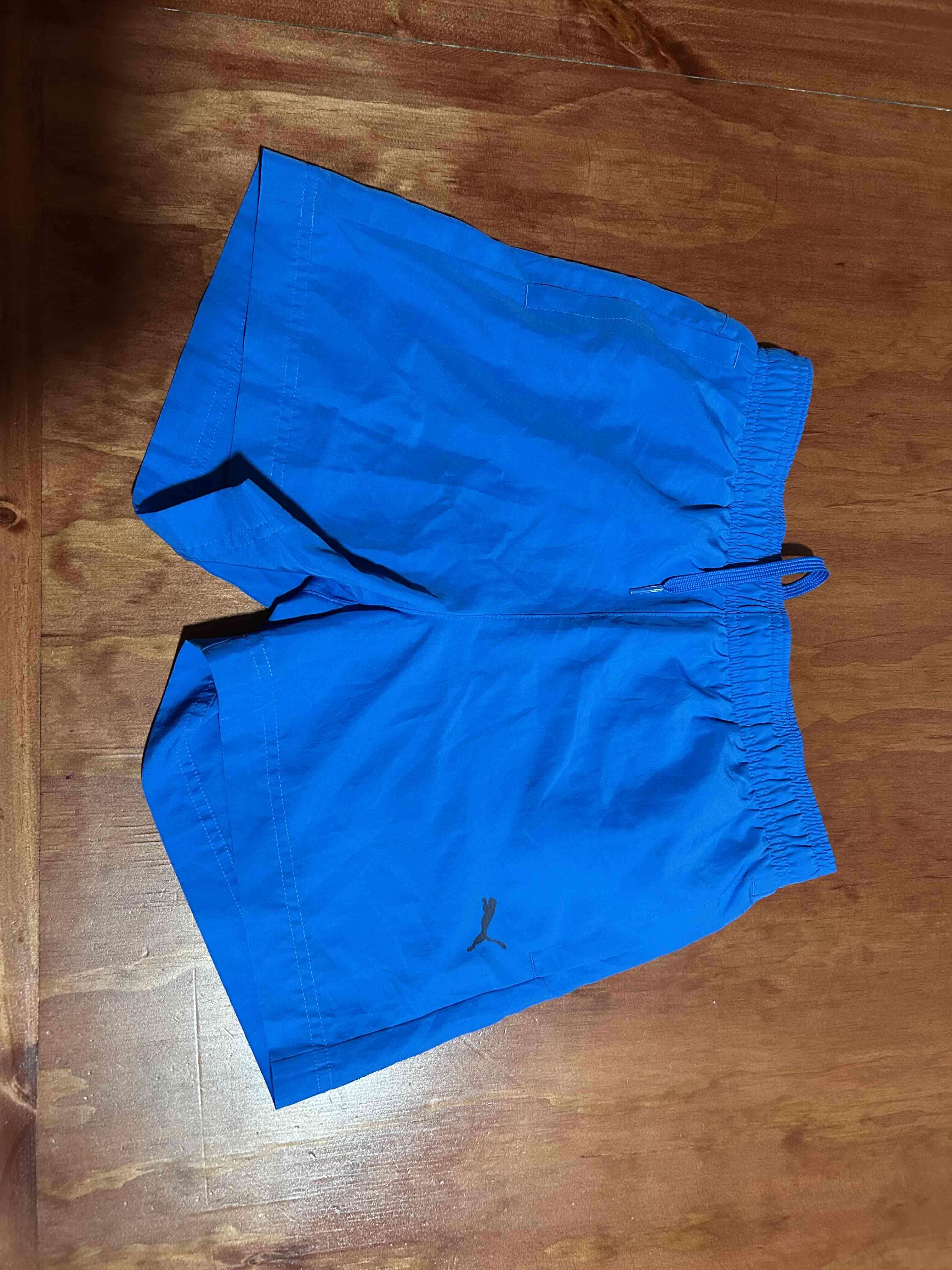 Short deportivo azul, ideal para entrenar o uso casual. En buen estado general, Talla 6