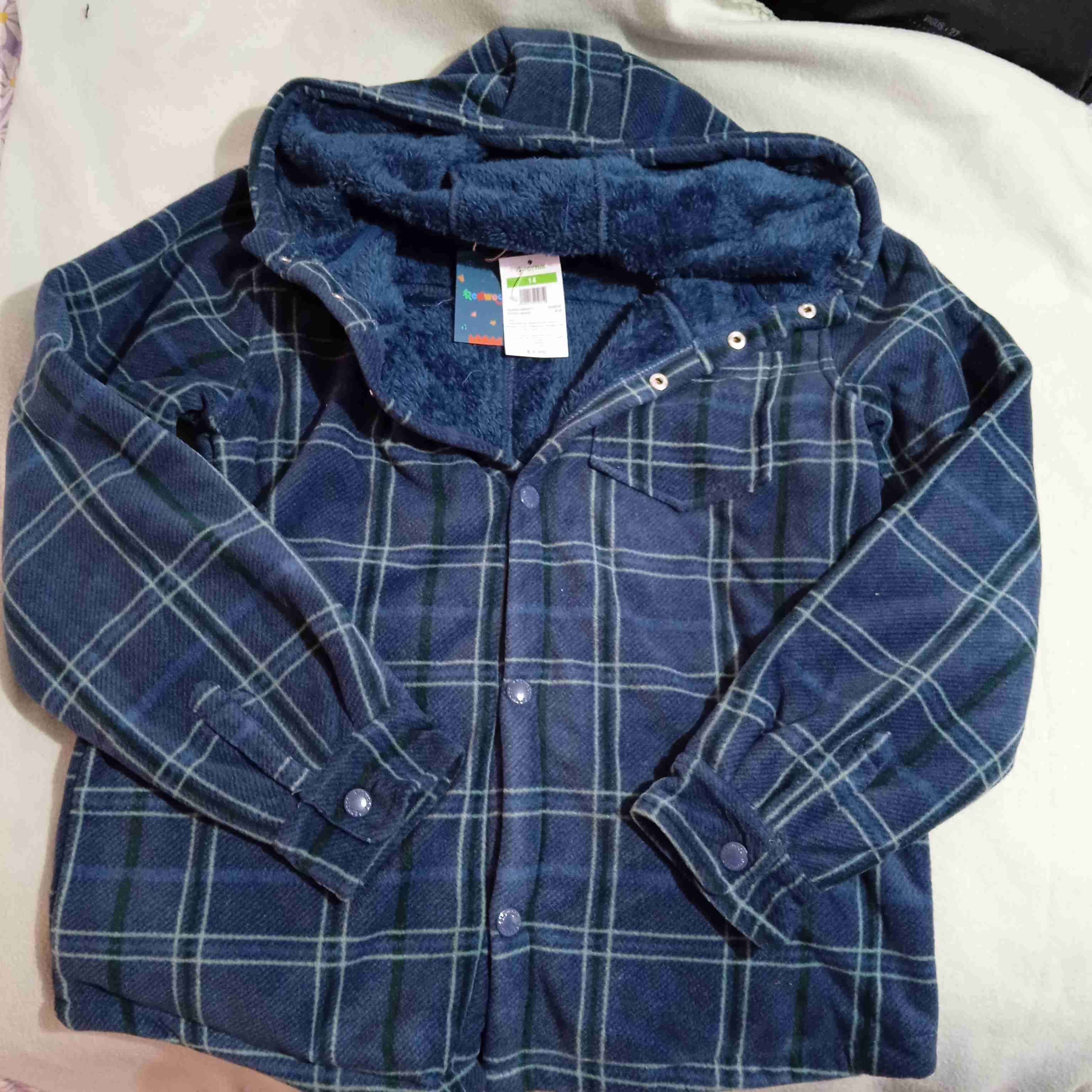 Chaqueta de franela azul con chiporro y diseño a cuadros. Ideal para el invierno, nueva. Talla 14