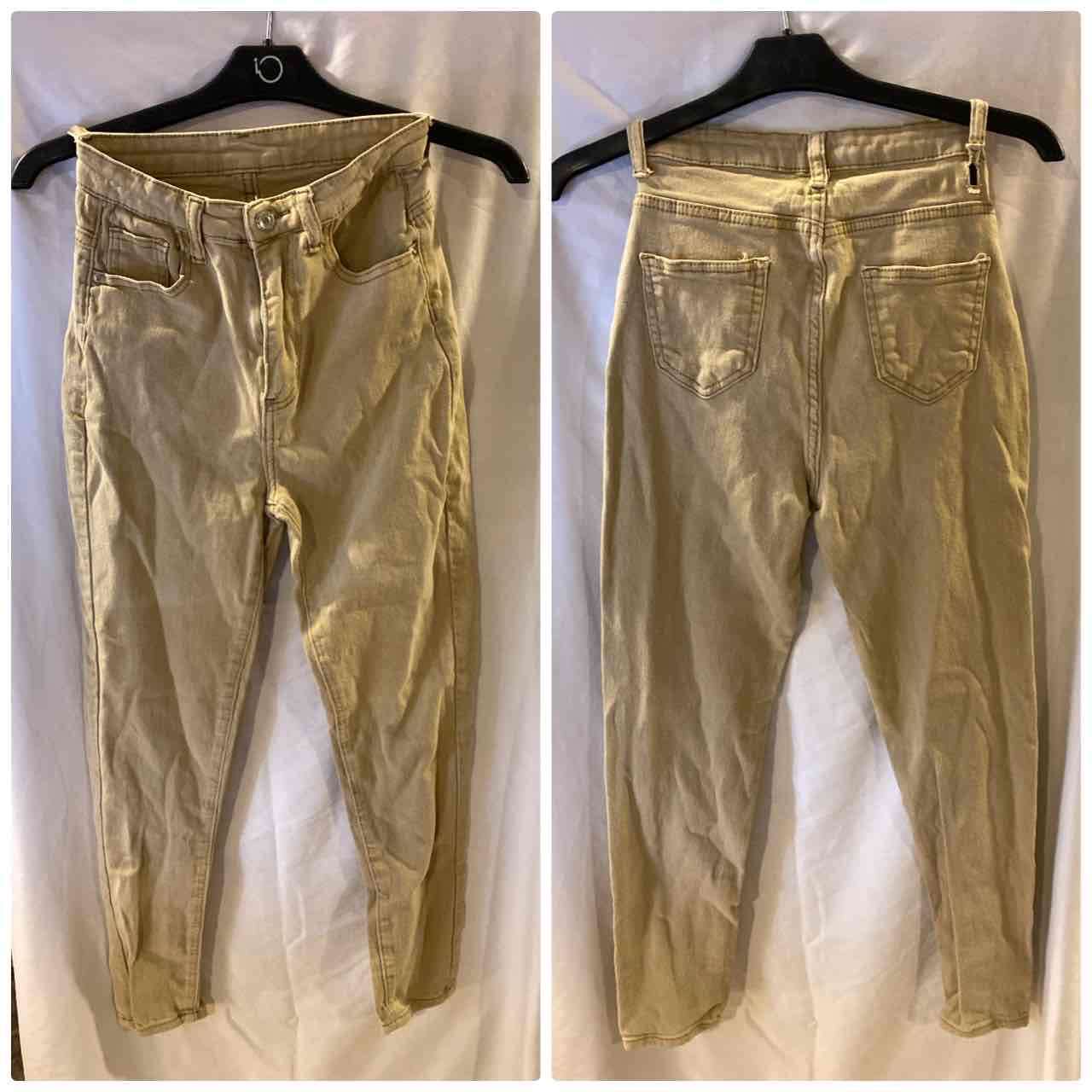 Jeans de color beige, cómodos y en buen estado. Perfectos para el día a día. Con desgaste entrepiernas.