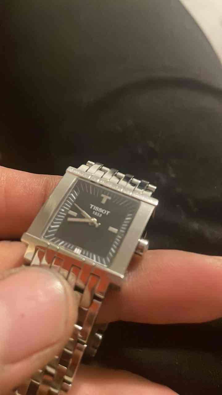 Reloj elegante de acero inoxidable con broche mariposa de la línea T lady de TISSOT, artículo vintage , cara negra , cristal de saphire resistente a rayaduras, caja 26mm , indicador de fecha a las seis , está recién pulido y con pila nueva