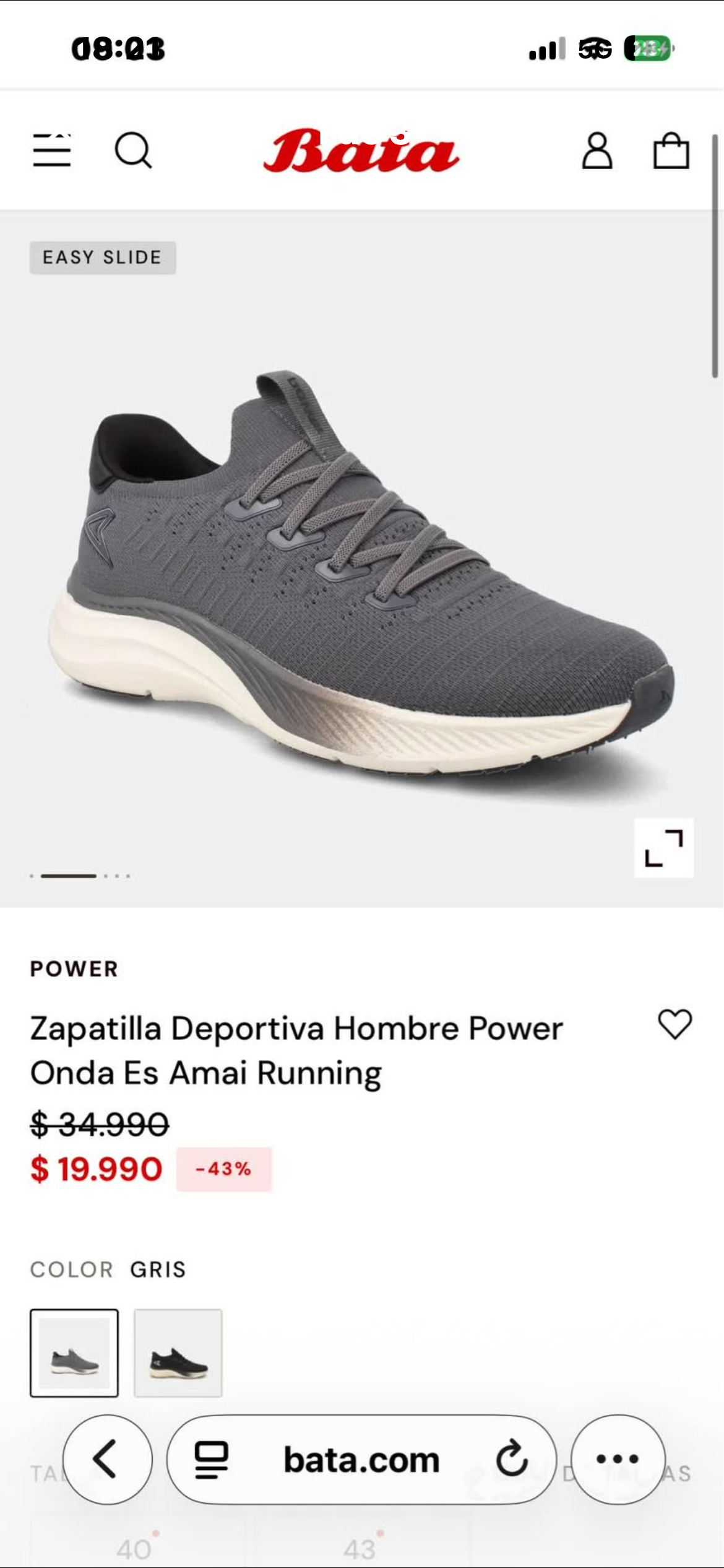 Zapatilla deportiva Power para hombre en color gris, ideal para running. En buen estado, listo para usar. Talla 43