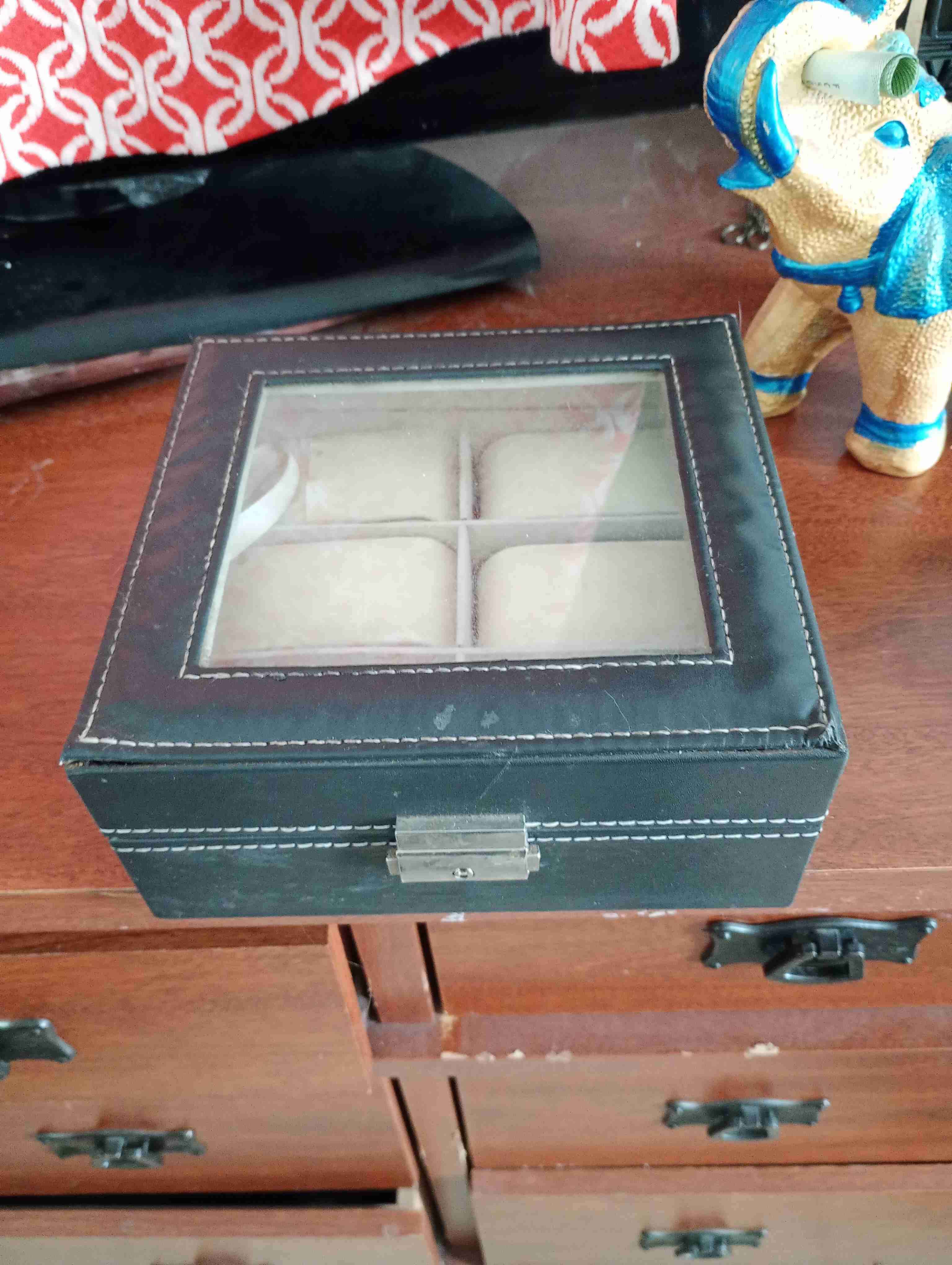 Elegante caja organizadora con tapa de vidrio. Ideal para almacenar relojes en buen estado.