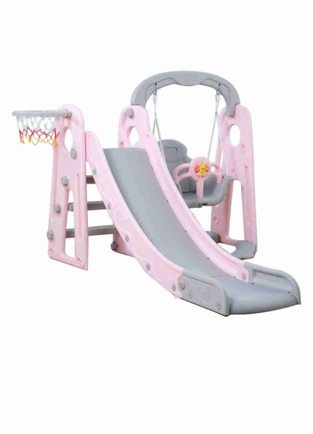 Resbalin y columpio infantil en color rosado, ideal para el jardín. En buen estado, perfecto para los más pequeños. Tiene todas sus piezas,tiene un par de manchas por el uso en la parte del resbalin pero, funciona como debe.