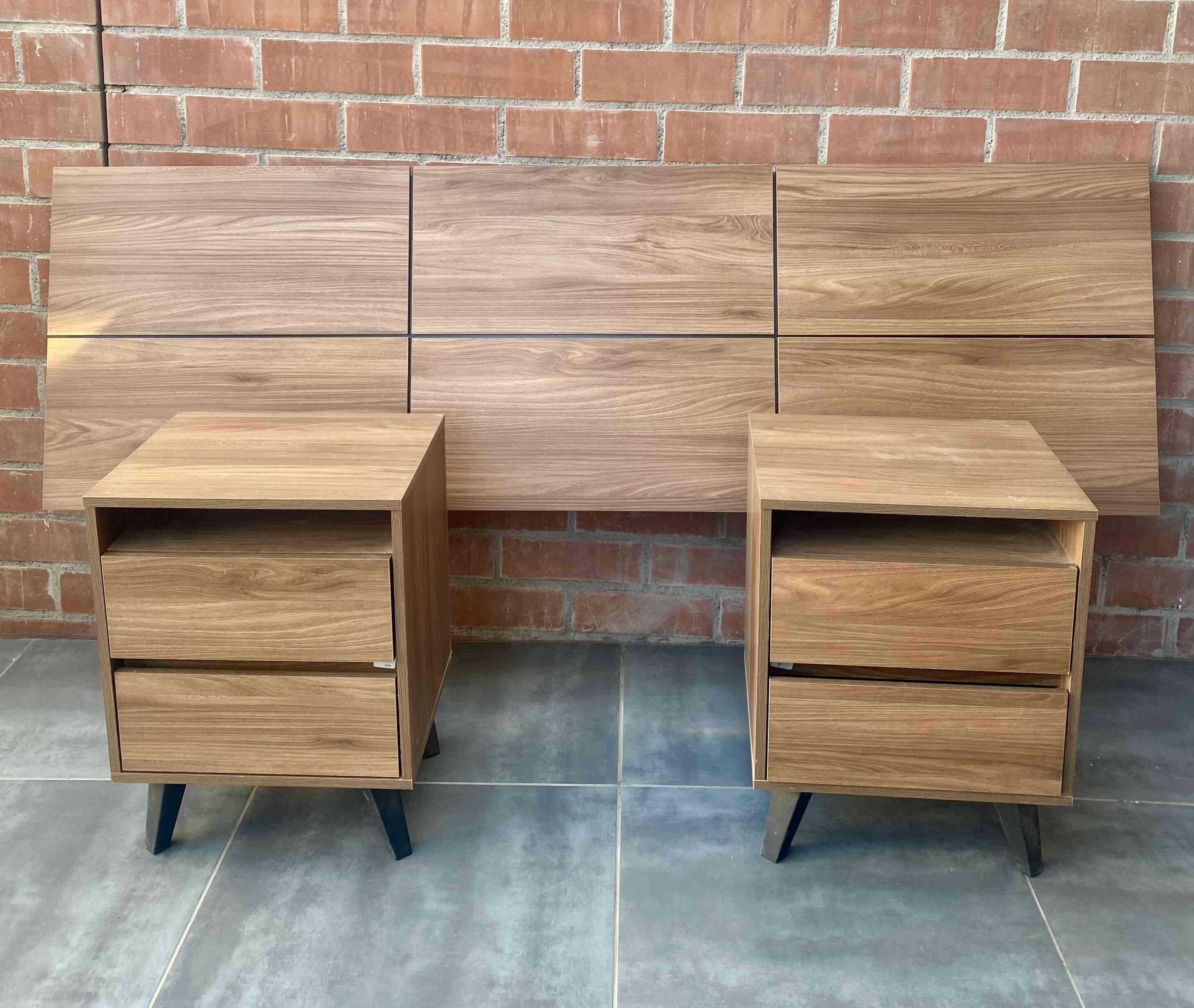 Juego de veladores y cabecera madera