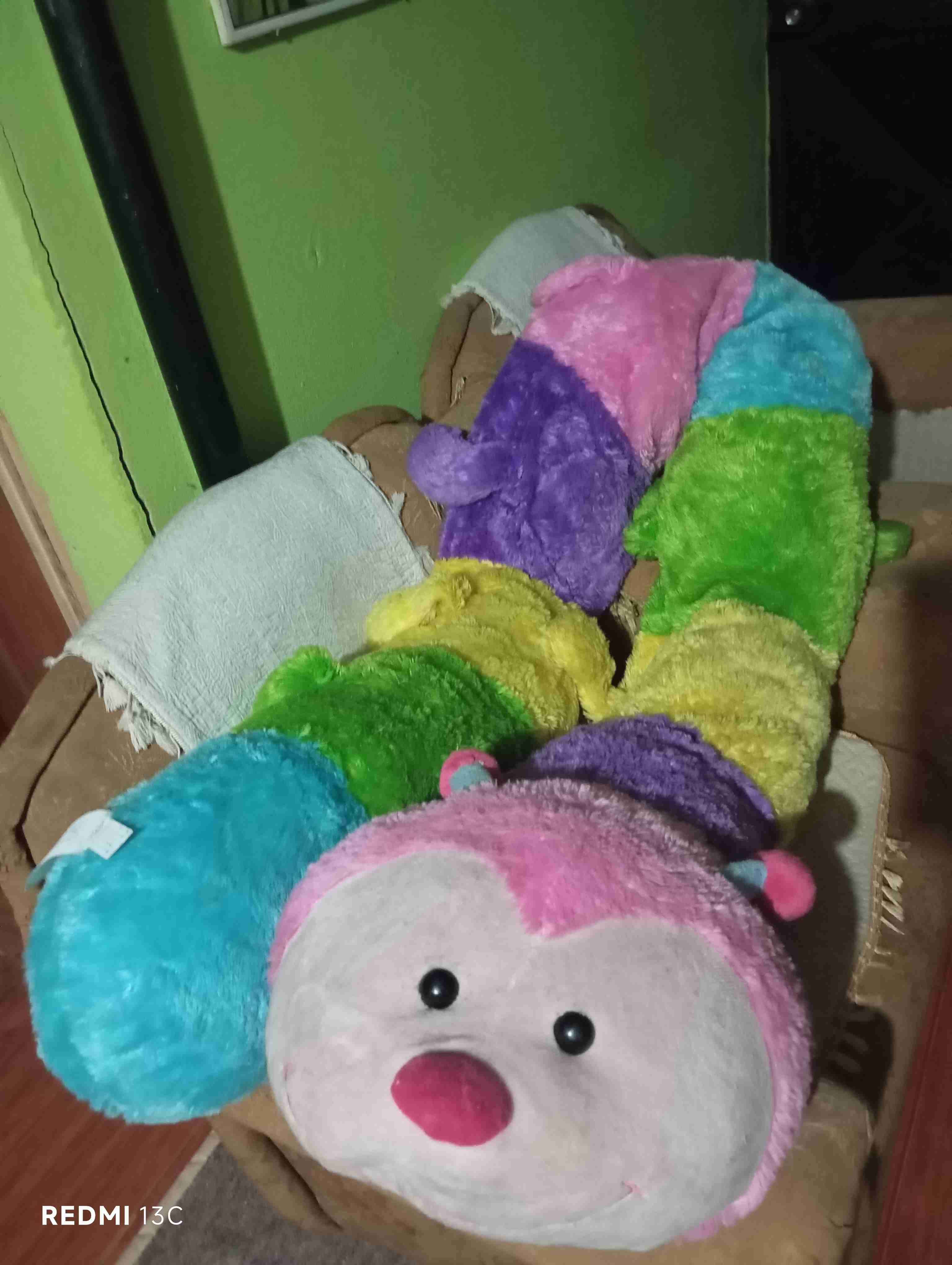 Cojín de oruga suave y colorida, ideal para decorar la habitación de los niños. En buen estado.