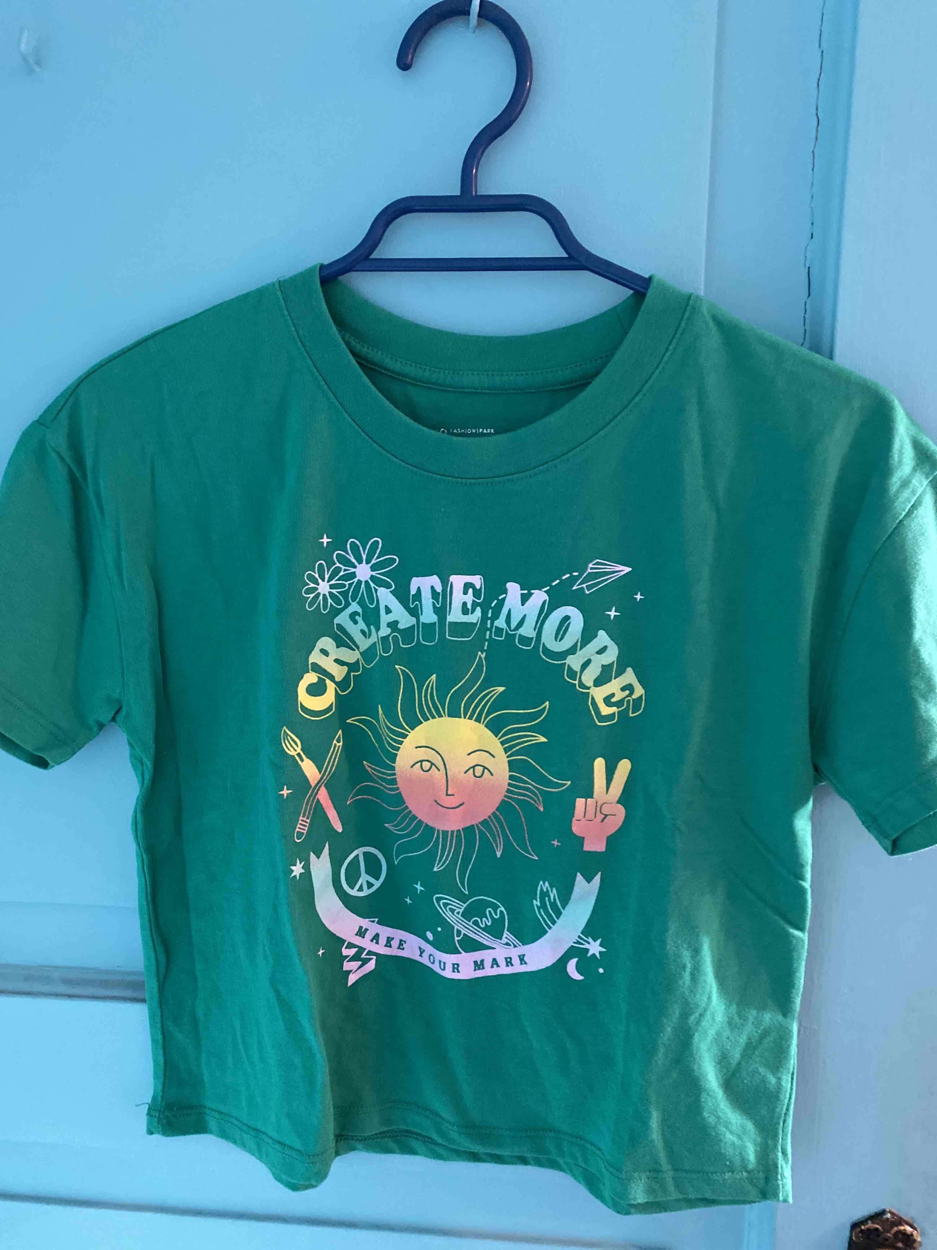 Polera verde con diseño gráfico soleado, estilo casual y juvenil. Ideal para uso diario.